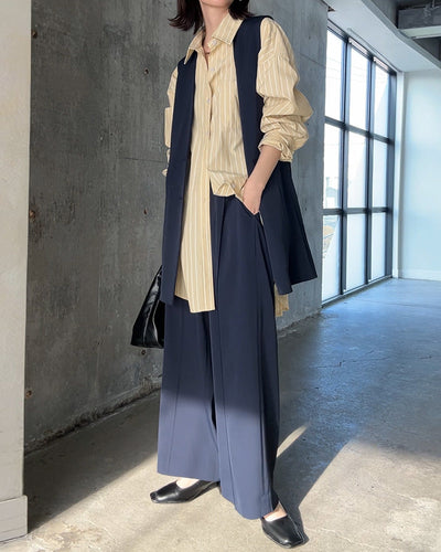ワンピース シャツ 大判 ストライプ シャツワンピース ■一部4月中旬入荷 ノーカラ― シャツワンピ レディース ロング ロングワンピース マキシ マキシワンピース ワンピ ロングシャツ ロングワンピ 長袖 羽織 きれいめ 体型カバー 大きいサイズ 青 黒 春 夏 HUG.U