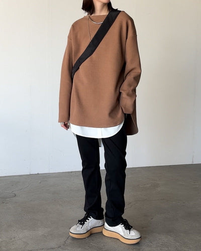 1,000円OFF スウェット ロング 配色 レディース ■一部3月下旬入荷 トップス 無地 ドロップショルダー トレーナー コクーン Uネック プルオーバー ゆったり 長い ドルマン オーバー チュニック お尻が隠れる バイカラー 大きいサイズ 体型カバー 春 夏 HUG.U