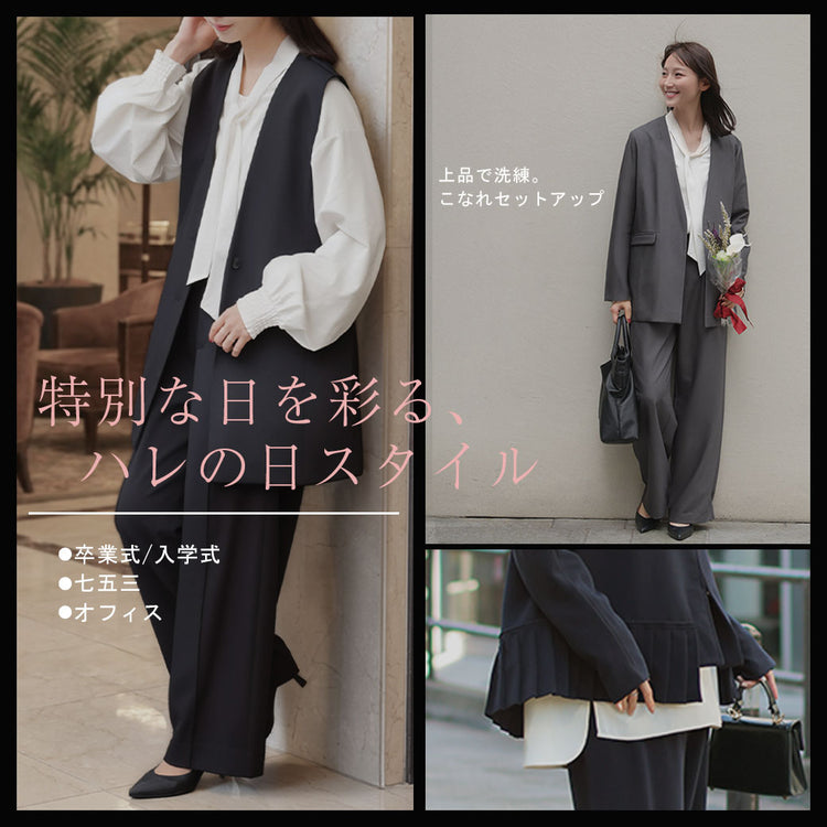 フォーマル 2点セット パンツ トップス 体型カバー ■一部2月下旬入荷 レディース パンツスーツ スーツ セットアップ バックフリル 入学式 卒業式 セレモニースーツ オケージョン レディーススーツ 母 ロング ずぼん ママ ママスーツ 大きいサイズ 紺 黒 春 夏 HUG.U