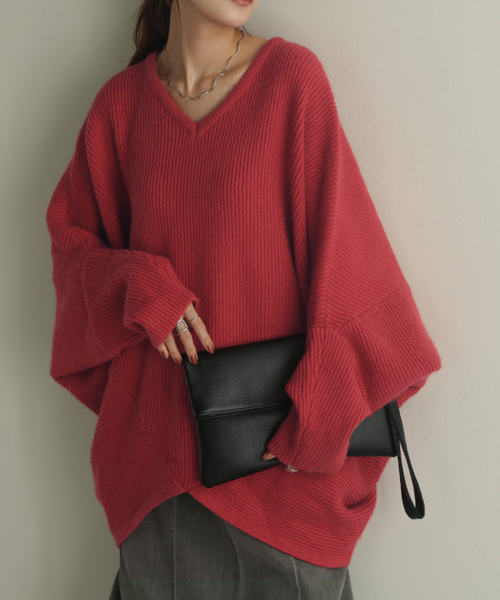 【冬SALE】 ニット トップス レディース コクーン ■一部3月中旬入荷 ドルマン セーター ドルマンスリーブ ドルマンセーター 体型カバー ドルマンニット チュニック 長袖 大きい 変形 ゆったり Vネック ロング おしゃれ きれいめ お尻が隠れる 黒 グリーン 春 夏 HUG.U