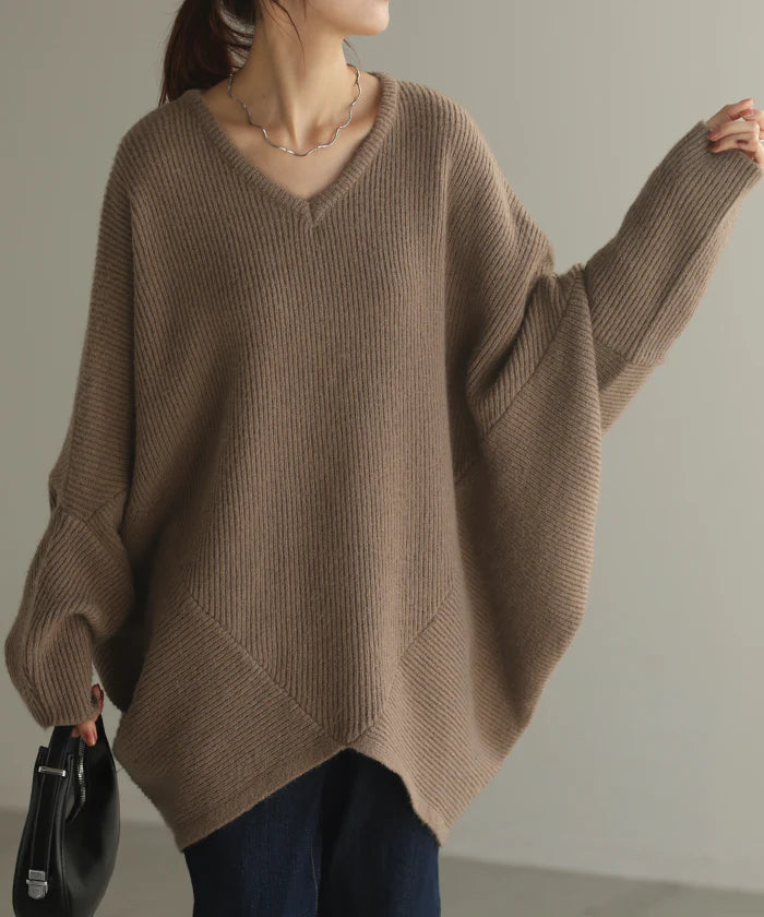【冬SALE】 ニット トップス レディース コクーン ■一部2月下旬入荷 ドルマン セーター ドルマンスリーブ ドルマンセーター 体型カバー ドルマンニット チュニック 長袖 大きい 変形 ゆったり Vネック ロング おしゃれ きれいめ お尻が隠れる 黒 グリーン 春 夏 HUG.U