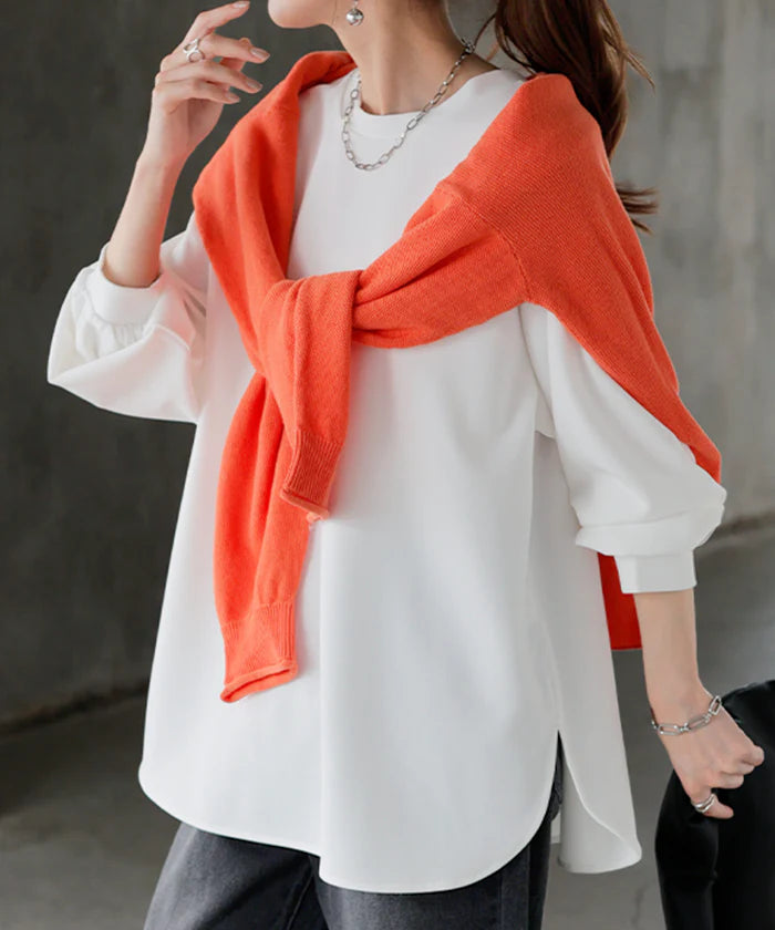 1,000円OFF スウェット ロング 配色 レディース ■一部5月中旬入荷 トップス 無地 ドロップショルダー トレーナー コクーン Uネック プルオーバー ゆったり 長い ドルマン オーバー チュニック お尻が隠れる バイカラー 大きいサイズ 体型カバー 春 夏 HUG.U