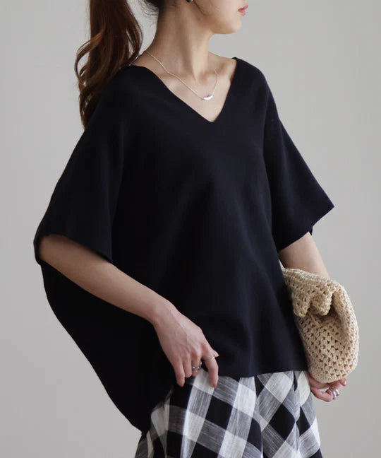 2026SS新作 サマーニット 「 サイダー ニット 」トップス ■一部6月上旬入荷 レディース Vネック 半袖 チュニック 軽い ロング プルオーバー 透け感 無地 シワになりにくい 吸水速乾 ドロップショルダー 体型カバー ゆったり 大きいサイズ カジュアル 春 夏 アースグレー ブラック HUG.U