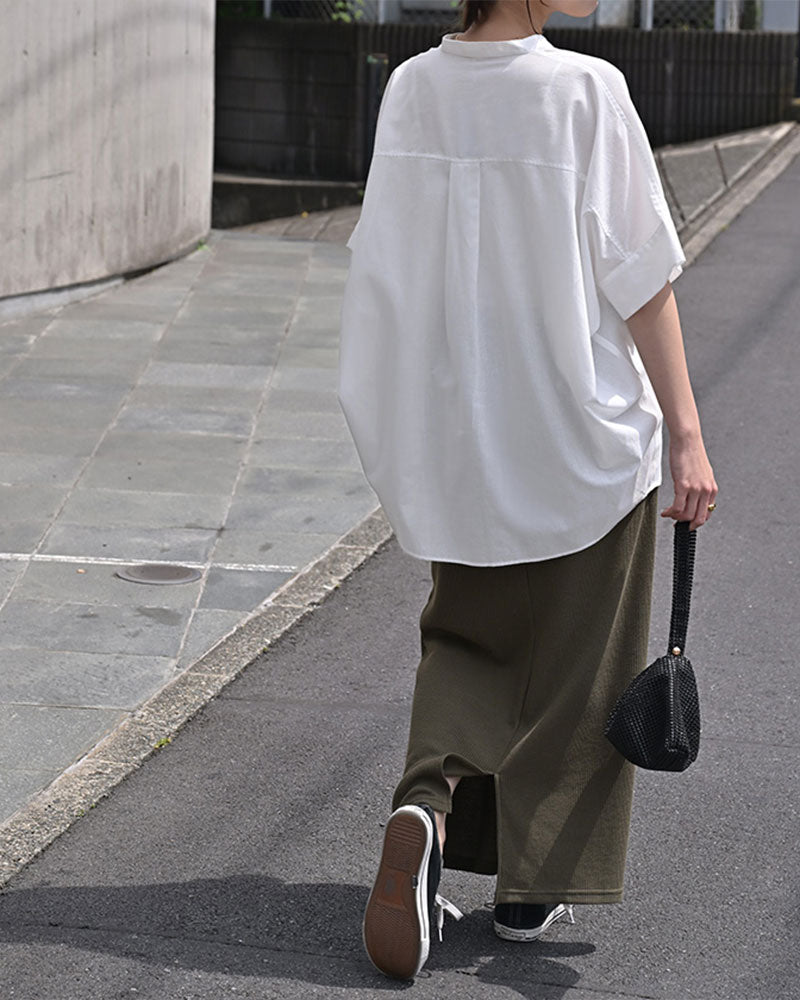 シャツ スキッパー 接触冷感 洗濯機 可能 トップス レディース ブラウス ロング ロングシャツ チュニック 半袖 無地 プルオーバー きれいめ ゆったり チクチクしない 大きいサイズ 体型カバー お尻が隠れる オフィスカジュアル 黒 白 春 夏 HUG.U