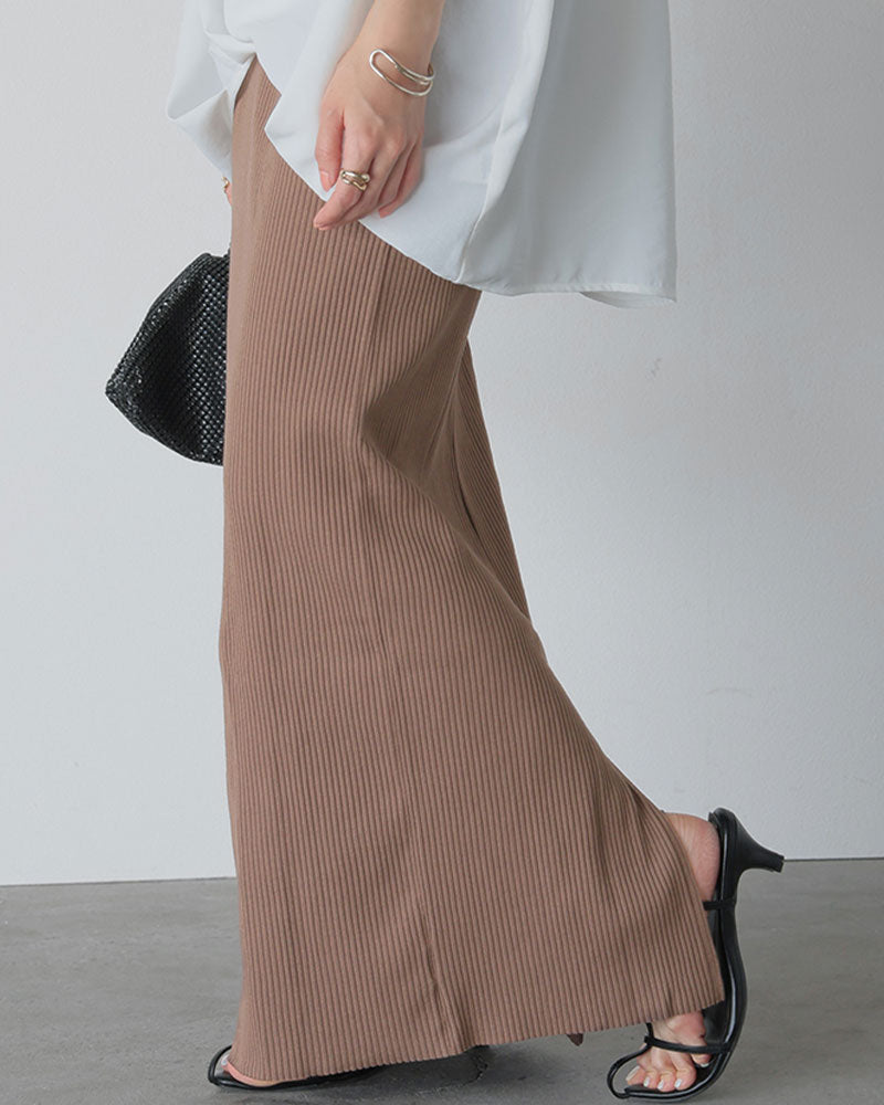 スカート タイトスカート ロングスカート セルフカット レディース ■一部11月上旬入荷 ボトムス ペンシルスカート リブ生地 シワになりにくい 無地 伸縮性 ウエストゴム ストレッチ スリット Iライン ロング マキシ マキシワンピース 体型カバー ブルー 黒 春 夏 HUG.U