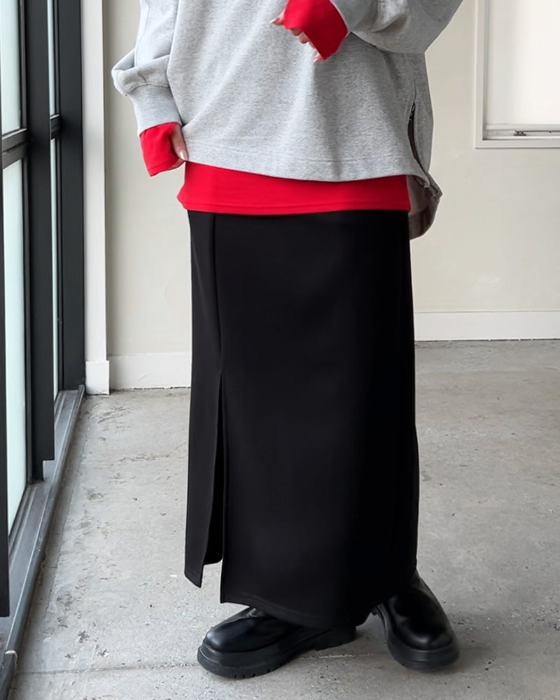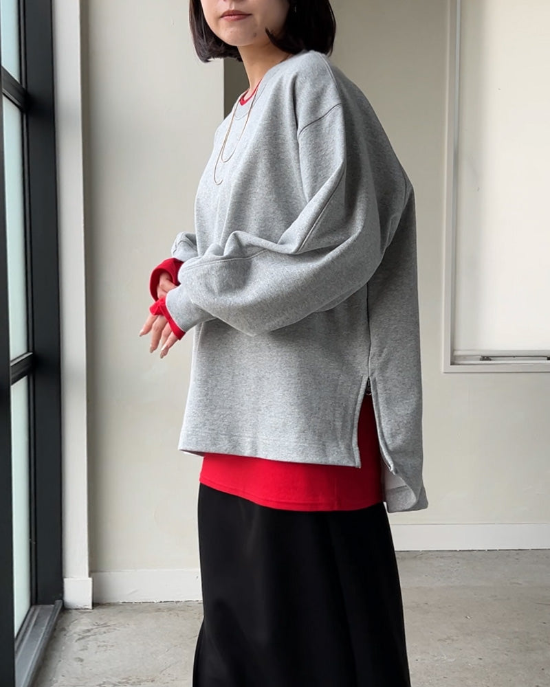 2025AW新作 スウェット ファスナー スリット ■一部2月中旬入荷 トップス ロング トレーナー プルオーバー ラグランスリーブ ドロップショルダー 切り替え 無地 長袖 長い リブ YKK オーバーサイズ ゆったり 体型カバー 大きいサイズ お尻が隠れる カジュアル 黒 グレー 秋 冬 HUG.U