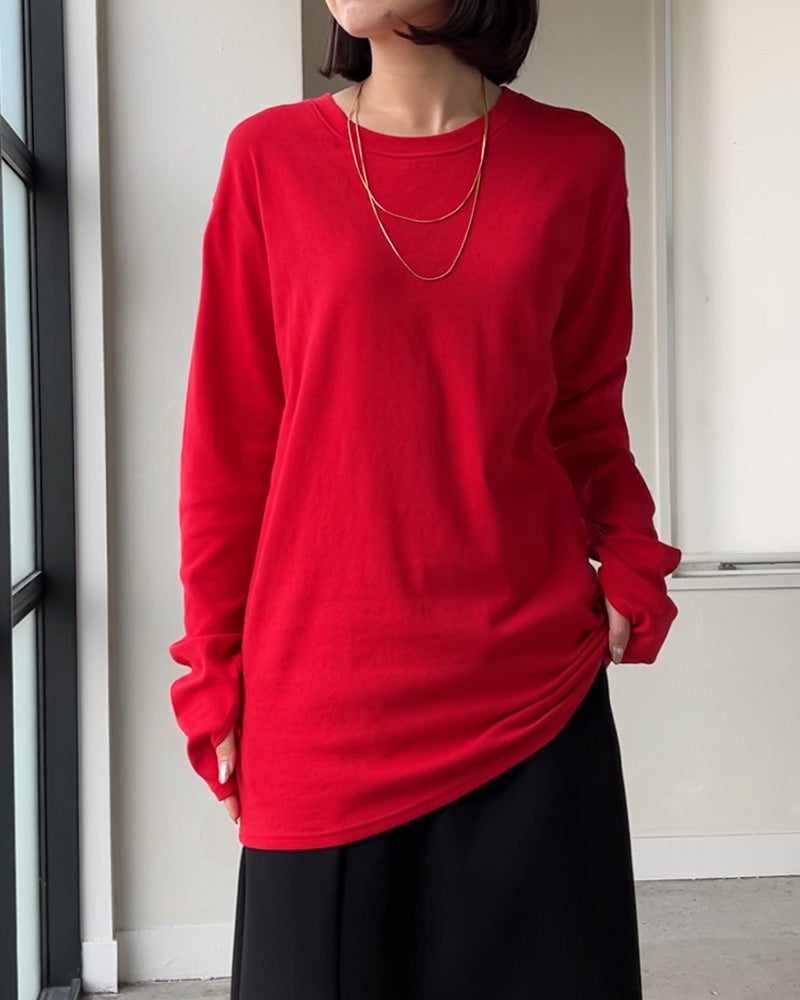 2025AW新作 インナー 防汚加工 レディース ロンT トップス ロング 長袖 Tシャツ カットソー ティーシャツ Vネック クルーネック ハイネック 長い レイヤード カラバリ ストレッチ サムホール ゆったり 無地 体型カバー 大きいサイズ おしゃれ 白 黒 秋 冬 HUG.U メール便