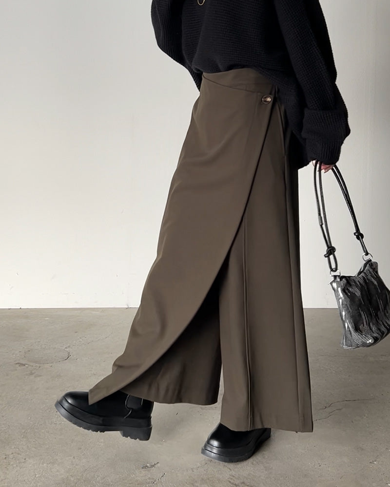 パンツ 巻き ロング アシメ レディース ■一部2月中旬入荷 ボトムス ボトム ウエストゴム ワイド 無地 長い リネン ナチュラル ハイウエスト ワイドパンツ ラップ ラップパンツ ズボン 巻きパンツ キュロット ポケット麻 風 綿 変形 きれいめ 黒 ベージュ 春 夏 HUG.U