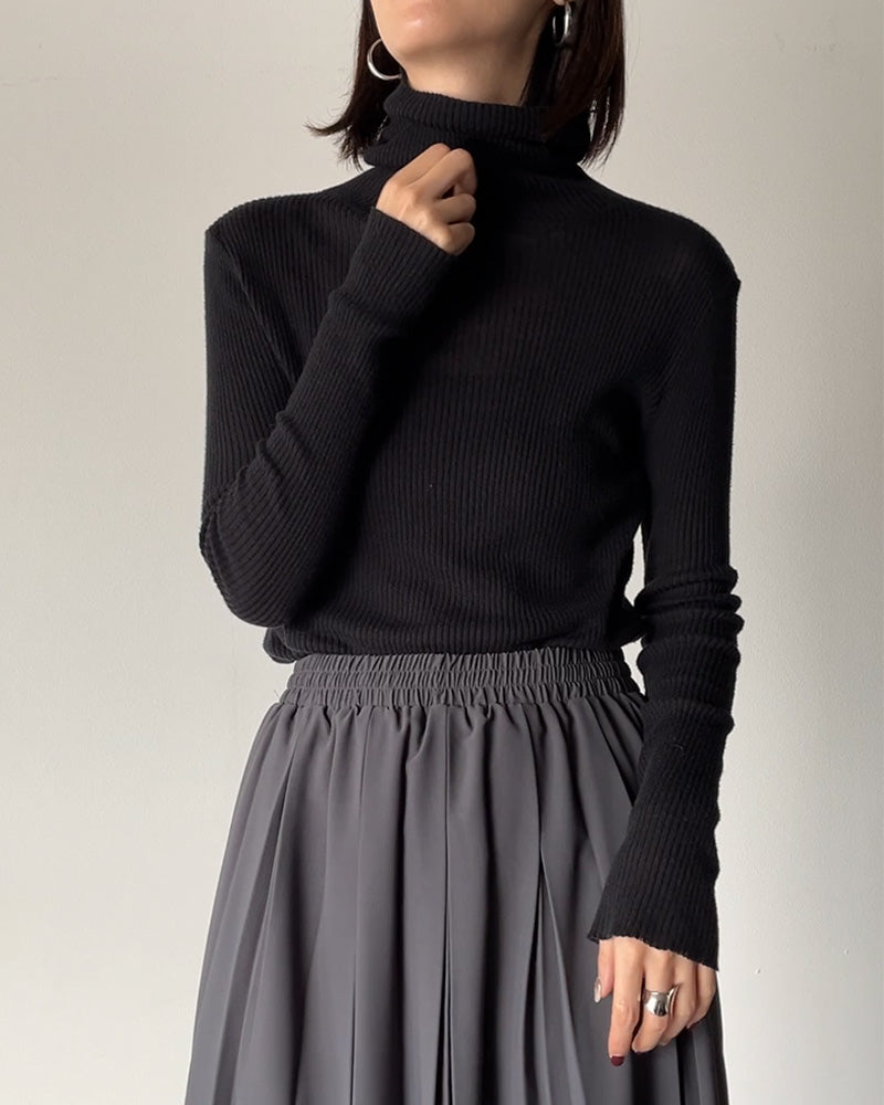 「素 肌 感 」ニット リブ ■一部2月中旬入荷 タートル タートルニット 下着 インナー リブニット タートルネック トップス レディース きれいめ 長袖 無地 レイヤード 重ね着 シンプル 白 綿100% コットン 黒 ブラック ストレッチ 冷え取り 春 夏 HUG.U メール便