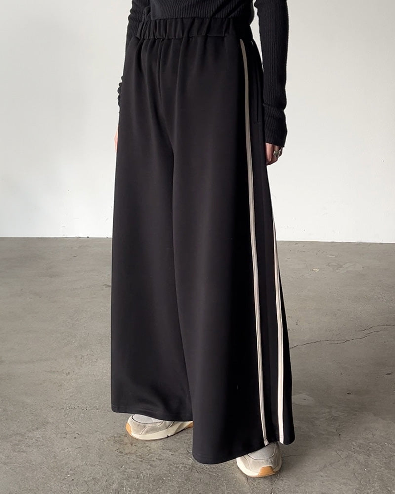 パンツ レディース ワイドパンツ トラックパンツ カラーパンツ ワイドパンツ ロング ウエストゴム 太い イージーパンツ 体型カバー 脚長 リラックス ジャージ ズボン カジュアル スポーツ 楽 きれいめ 無地 大きいサイズ 黒 グリーン 春 夏 HUG.U
