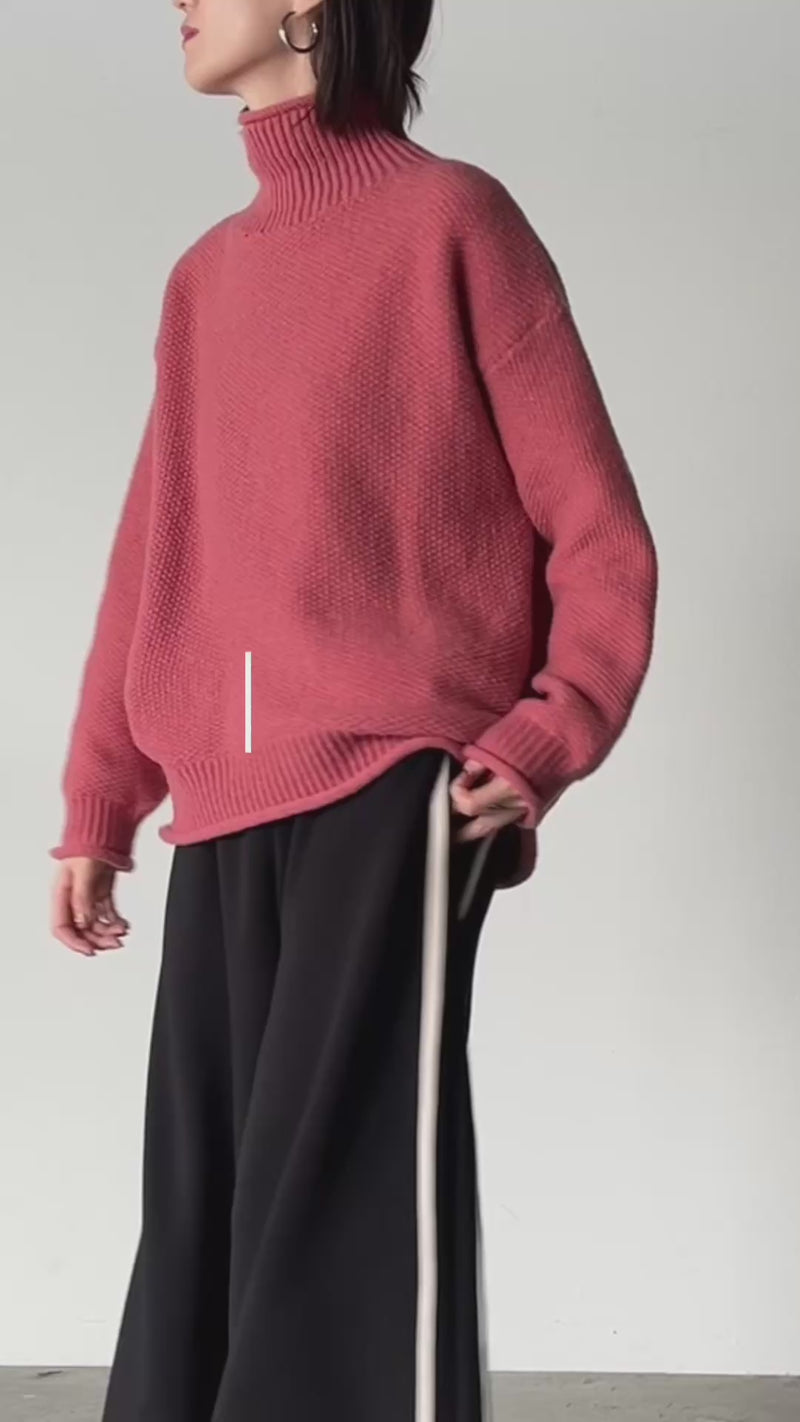 チクチクしない 「 鹿のこニット 」 ニット ■一部2月中旬入荷 タートルネック タートルニット レディース セーター トップス 長袖 ハイネック ハイネックニット 肉厚 体型カバー タートル ゆったり 鹿のこ リブ 凸凹 無地 ナチュラル コクーン ブラック 春 夏 HUG.U