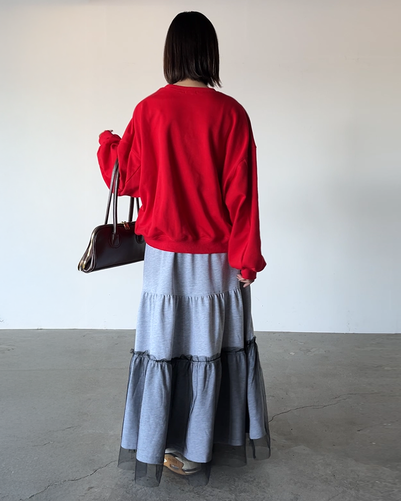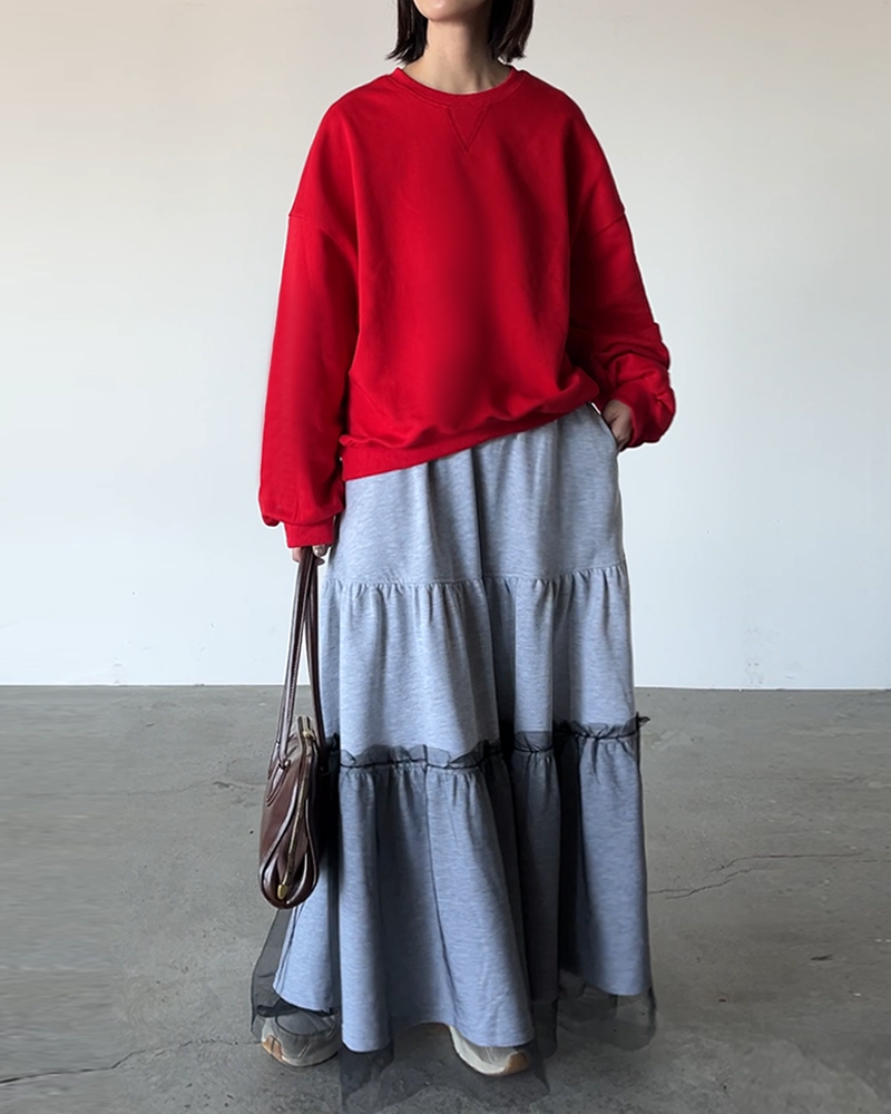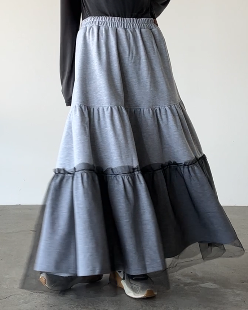 【冬SALE】 スカート スウェット チュール ティアード Aライン レディース ロングスカート ボトムス スエット きれいめ フレア フレアスカート ゴム ロング マキシ マキシスカート 無地 ボトム ゆったり おしゃれ ストレッチ 黒 白 春 夏 HUG.U