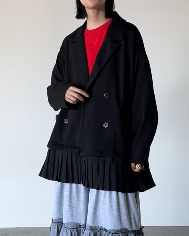 気分で変えられる、頼れる2wayアイテム ✨プリーツが着け外しができて、ジャケットが苦手な方もラフに羽織ってカジュアルにも使える万能デザイン🧥スカートはトップス次第できれいめにもカジュアルにも振れるから、オンもオフも活躍してくれる優秀コーデ☝️柔らかなチュールスカートの異素材コンビで甘さ控えめな大人フェミニンスタイル♡