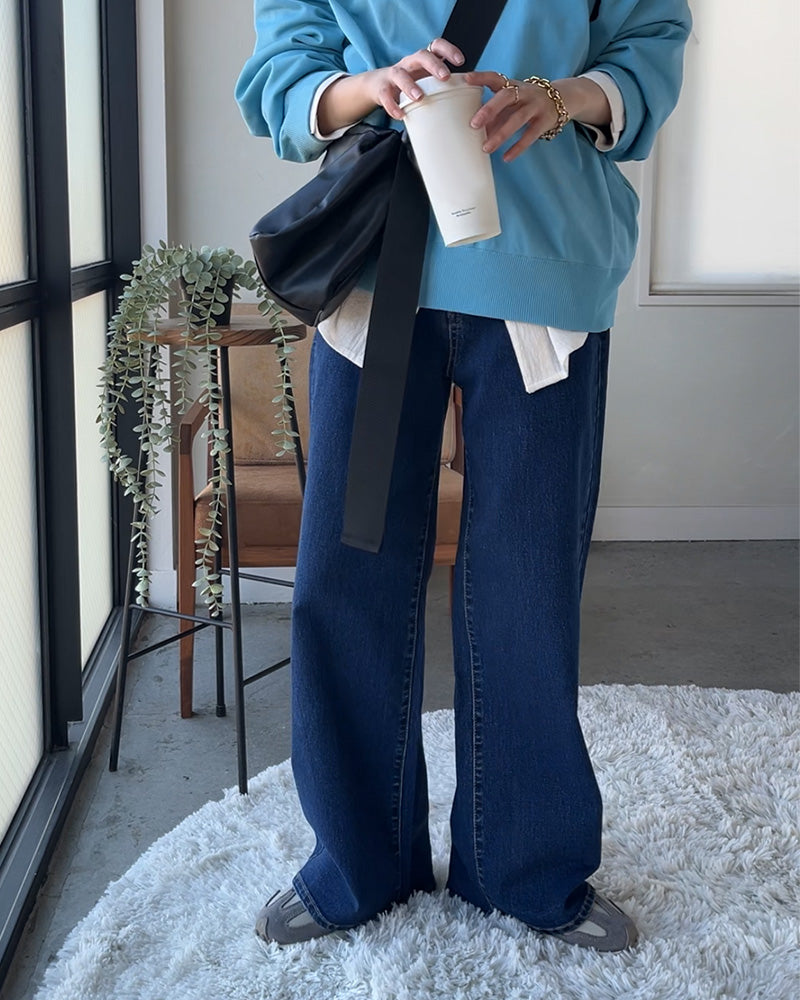 2025AW新作 デニム パンツ 美脚 ■一部2月下旬入荷 デニムパンツ レディース ワイドパンツ ワイド ジーンズ ジーパン 体型カバー ボトムス ボトム ストレート ズボン ゆったり ハイウエスト 伸びる ゴム ストレッチ 大きいサイズ 秋 冬 HUG.U