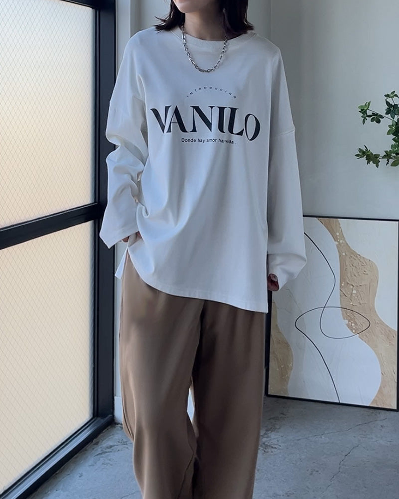 ロゴT 「 理想の オーバーサイズ 」ロゴ ■一部2月下旬入荷 ロンT レディース カットソー 長袖 Tシャツ ロング チュニック ビッグ プリント 二の腕カバー ドルマン 大きいサイズ きれいめ トップス 体型カバー 大人 お洒落 黒 白 春 夏 HUG.U メール便