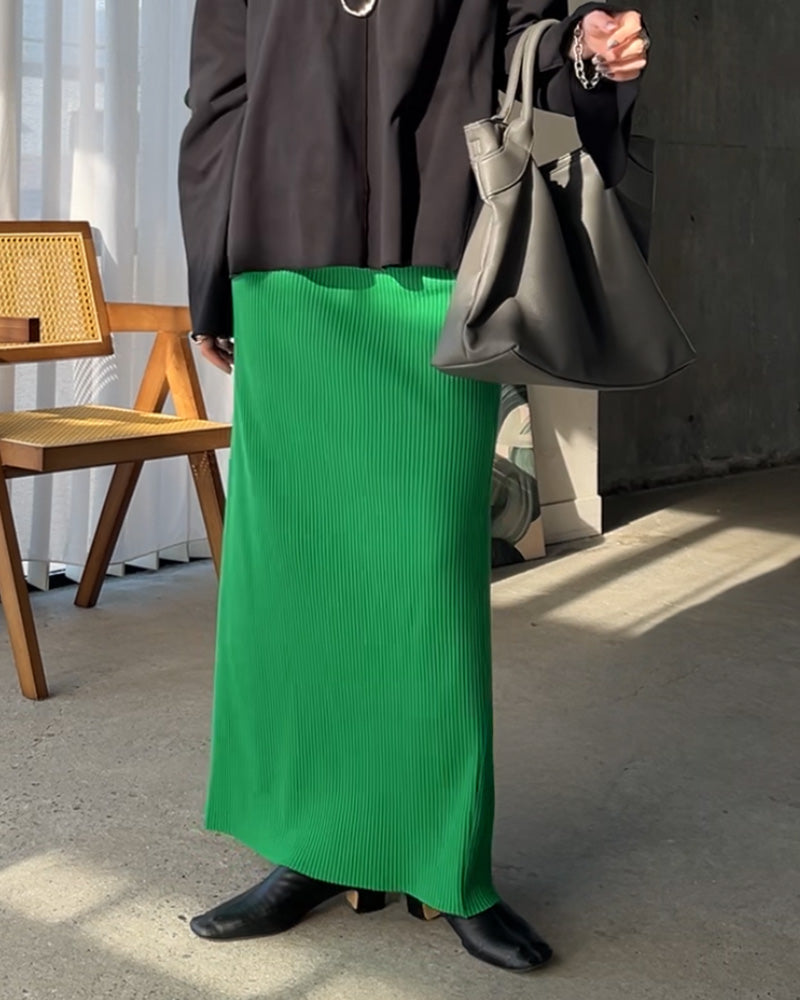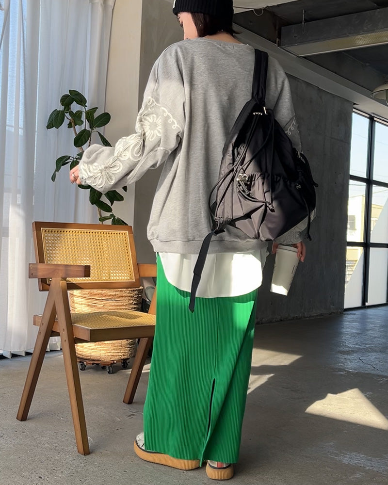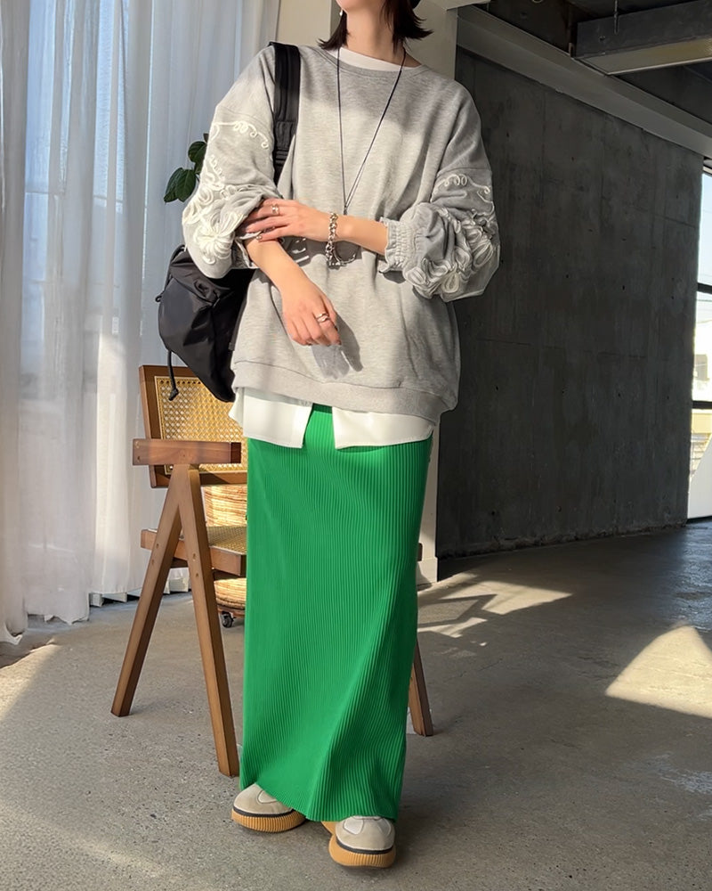 動きやすく、よく伸びる素材を使ったタイトスカート。しゃがんだりたくさん歩いたりする日も、ストレスを感じにくい穿き心地です🚶🏻✨セルフカット仕様で、丈を自分に合わせて調整可能✂️身長を気にせず選べて、バランスよく着られます。伸び感抜群で動きも気にしすぎず旅行や行事の日にも選びやすい一枚です。