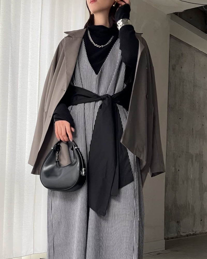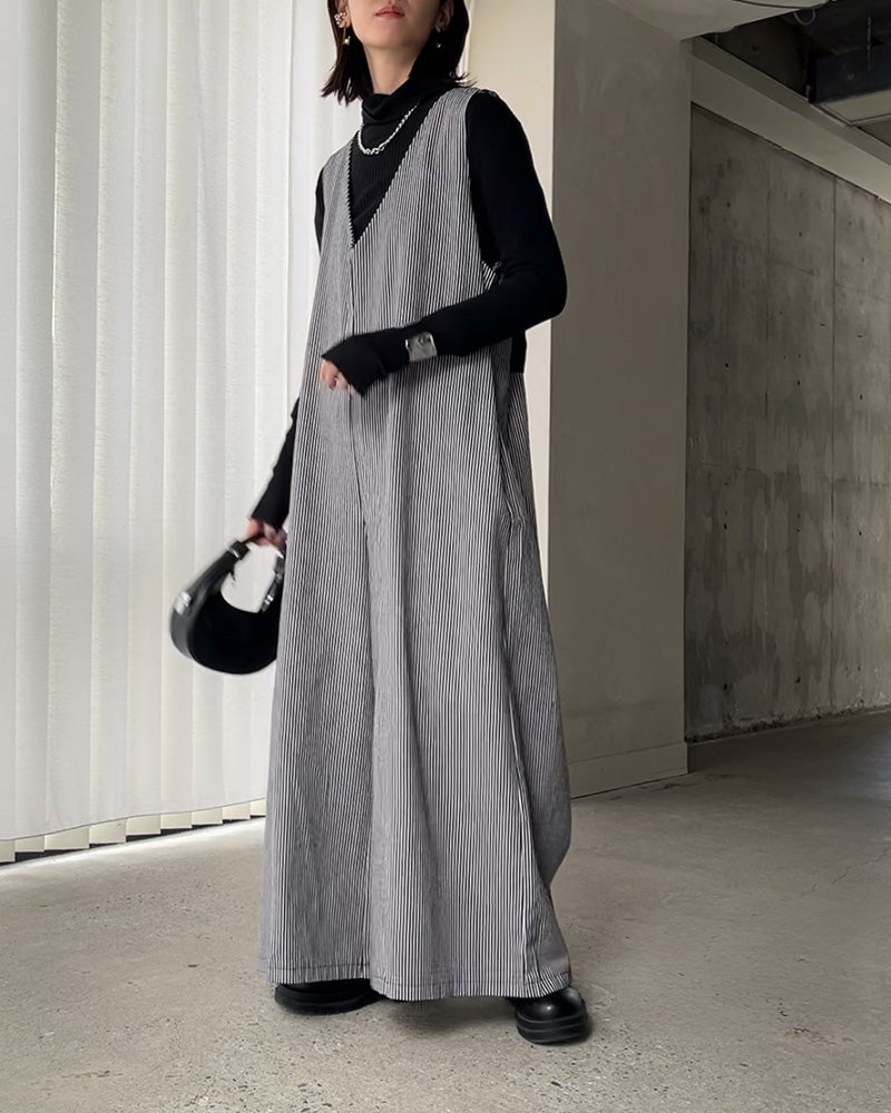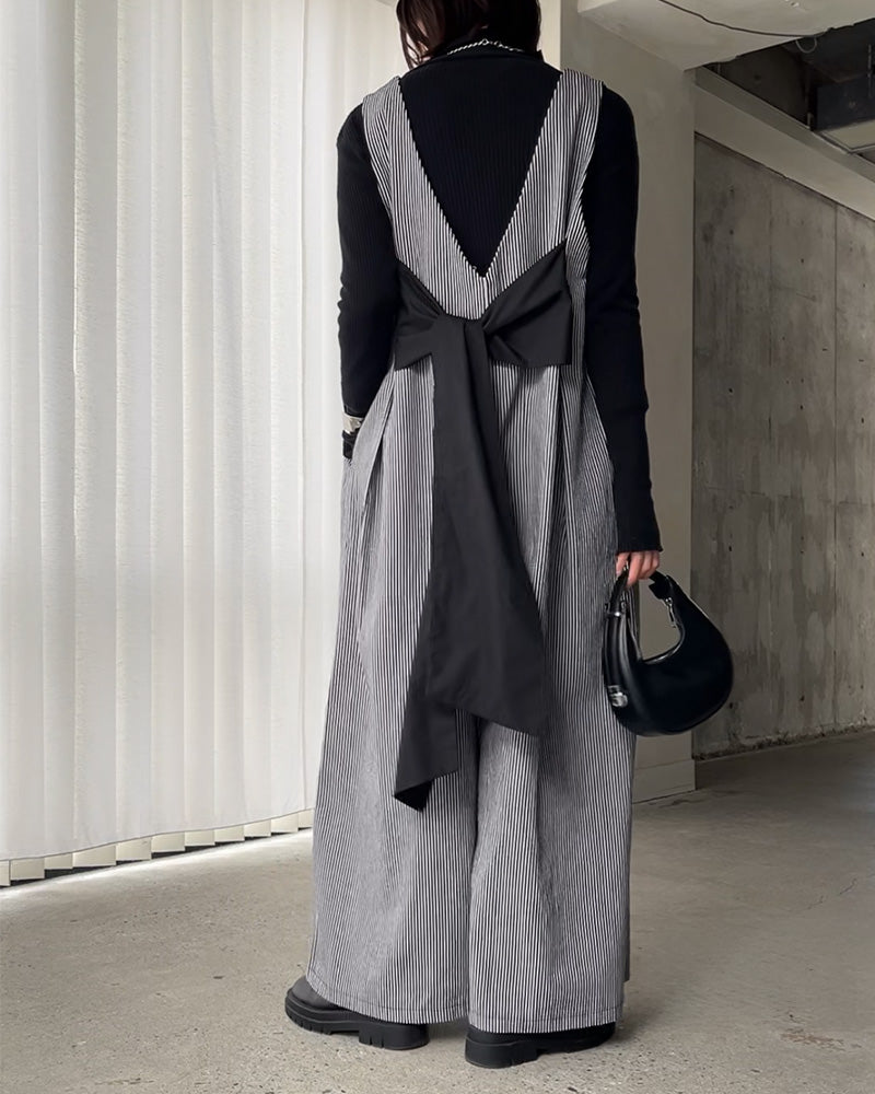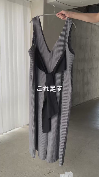 リボンデザインがさりげなく効いた、オールインワン🎗️甘さを抑えたデザインで、大人っぽく取り入れられます。深めのVネックと、ストンと落ちるシルエットで、縦ラインを強調しながらすっきりとした印象に📏体のラインを拾いにくく、気になるところは自然にカバーしてくれるのも嬉しいポイント◎デニム素材なので季節を問わず着やすく、インナー次第でロングシーズン活躍します🌿