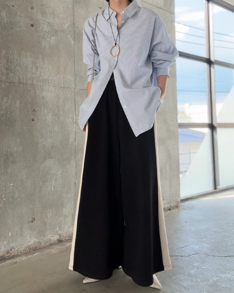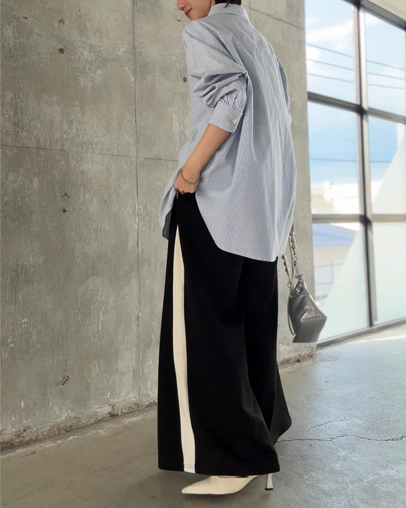 計算されたシルエットだから、テクニックいらずでお洒落が完成。上下セットで着るだけでバランスが整い、きれいめにもカジュアルにも振れる万能デザイン。