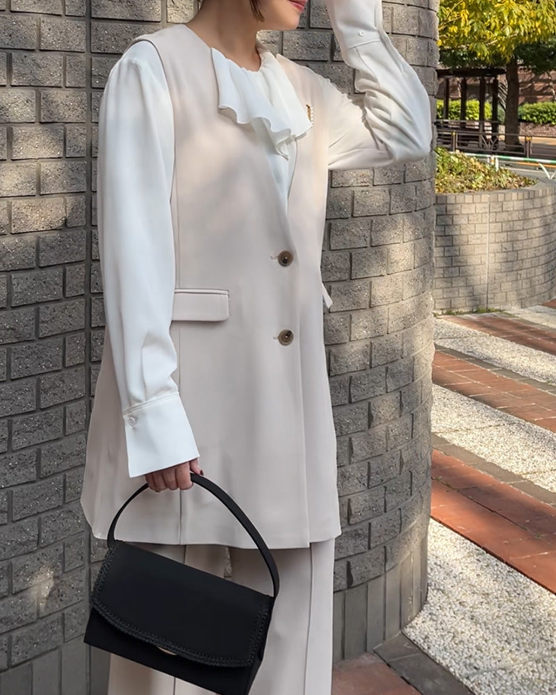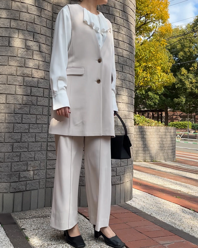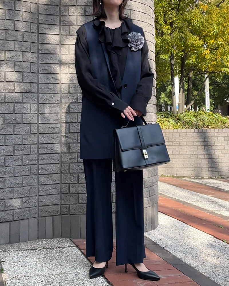 お子様の卒園・卒業、入園・入学式に📍今っぽく決まるフォーマルセットアップ。すっきりとした縦ラインで、羽織るだけでバランスが整います📐セットでも単品でも使えて、インナー次第で印象を変えられるのも魅力。さらに洗える素材だから、行事のあとも気負わず普段使いできます🫧特別な日にも、その先の日常にも。