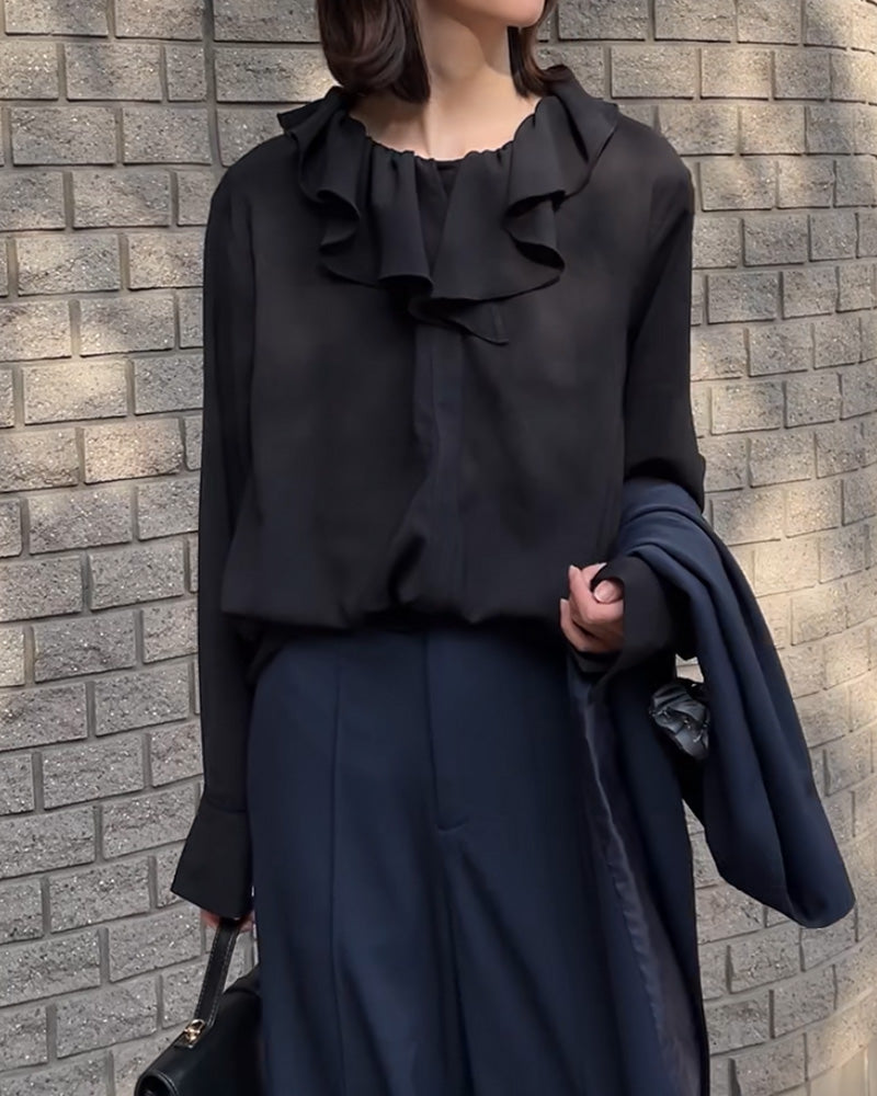 【早割10%OFF】2026SS新作 シャツ フリルブラウス レディース ■4月上旬入荷 トップス 長袖 フリルカラー フォーマル ブラウス 体型カバー シワになりにくい シェルボタン 軽い 大きいサイズ 卒業式 入学式 ママ 卒園式 入園式 仕事 きれいめ オフィスカジュアル 春 夏 ホワイト ブラック HUG.U