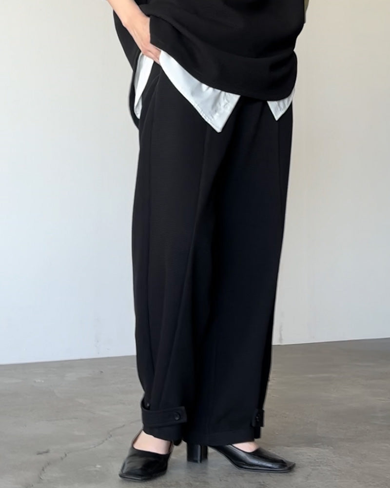 2025AW新作 パンツ ワイド ワッフル レディース ワイドパンツ ロング ロングパンツ カーブパンツ 体型カバー ボトムス ボトム ストレート ズボン ゆったり ハイウエスト ストレッチ 美脚 きれいめ リラックス 大きいサイズ 黒 ネイビー 秋 冬 HUG.U