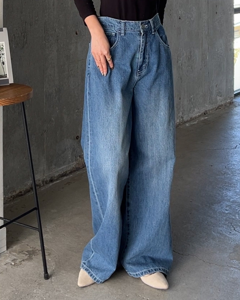 「ダボ × スッキリ」デニム パンツ レディース ■一部5月中旬入荷 ストレートパンツ ジーンズ ボトムス ゆったり ワイドパンツ ボーイフレンドデニム ボーイフレンド ストレート ワイド ロング ズボン デニムパンツ ボトム 体型カバー 大きいサイズ 春 夏 HUG.U