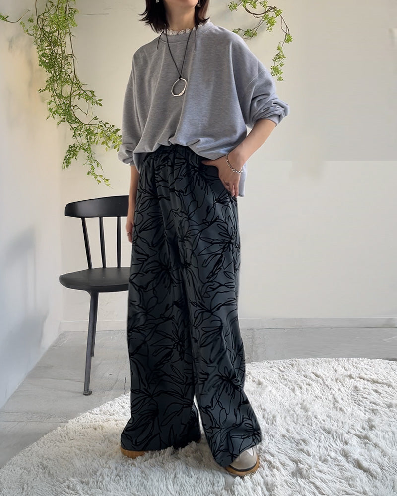 【花柄が目を引く、主役級パンツコーデ】