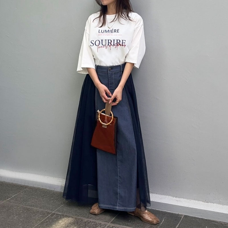 【デニムにふわり、チュールを重ねて。遊び心ある夏コーデ】