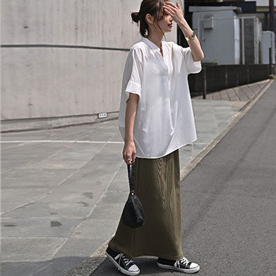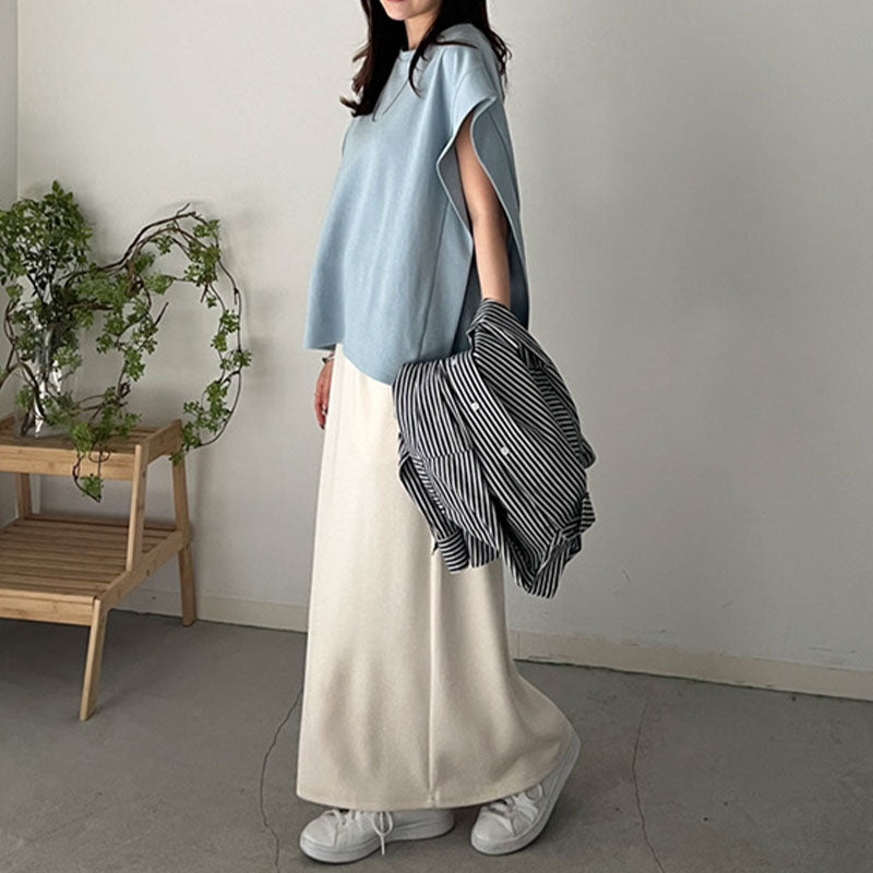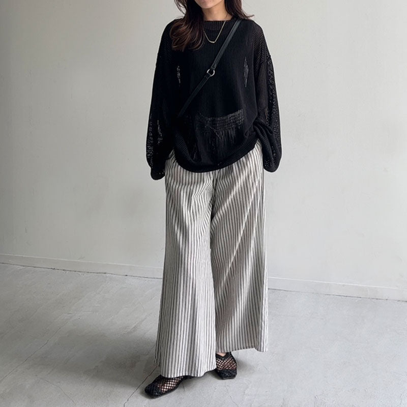 【さりげなく二の腕カバー、涼やか綺麗めコーデ】