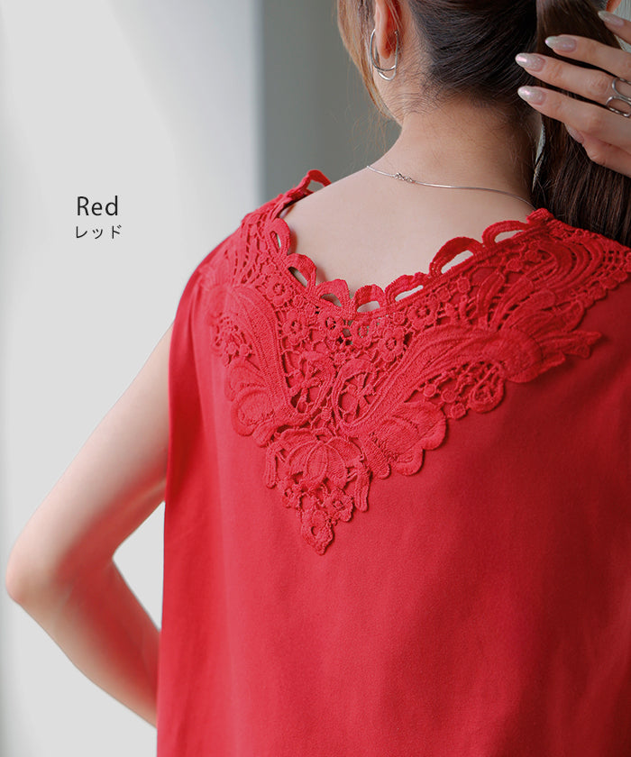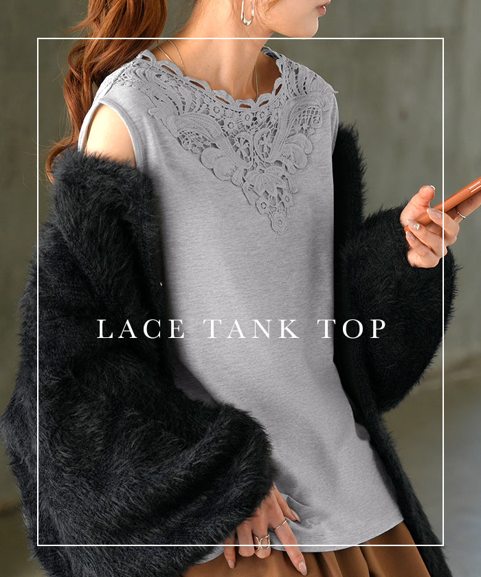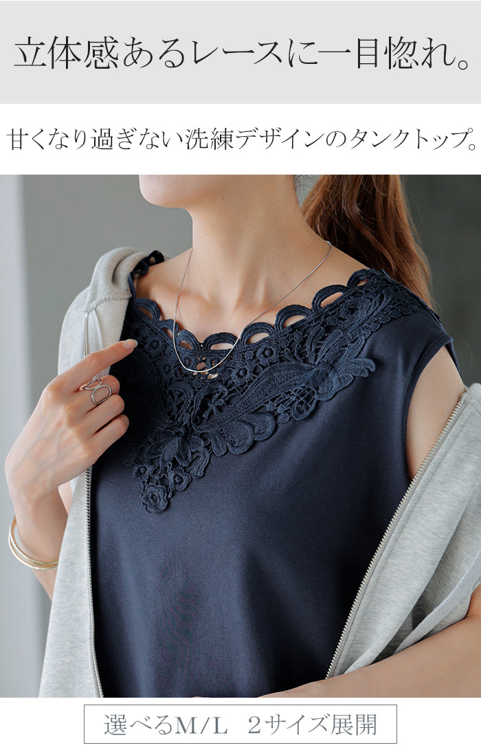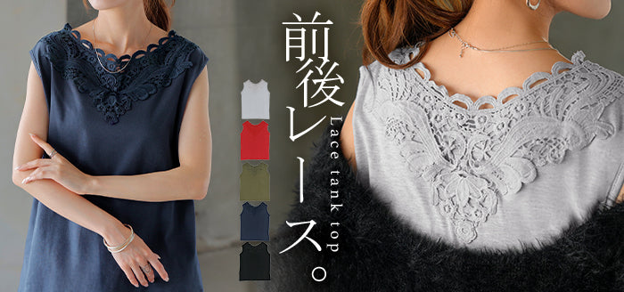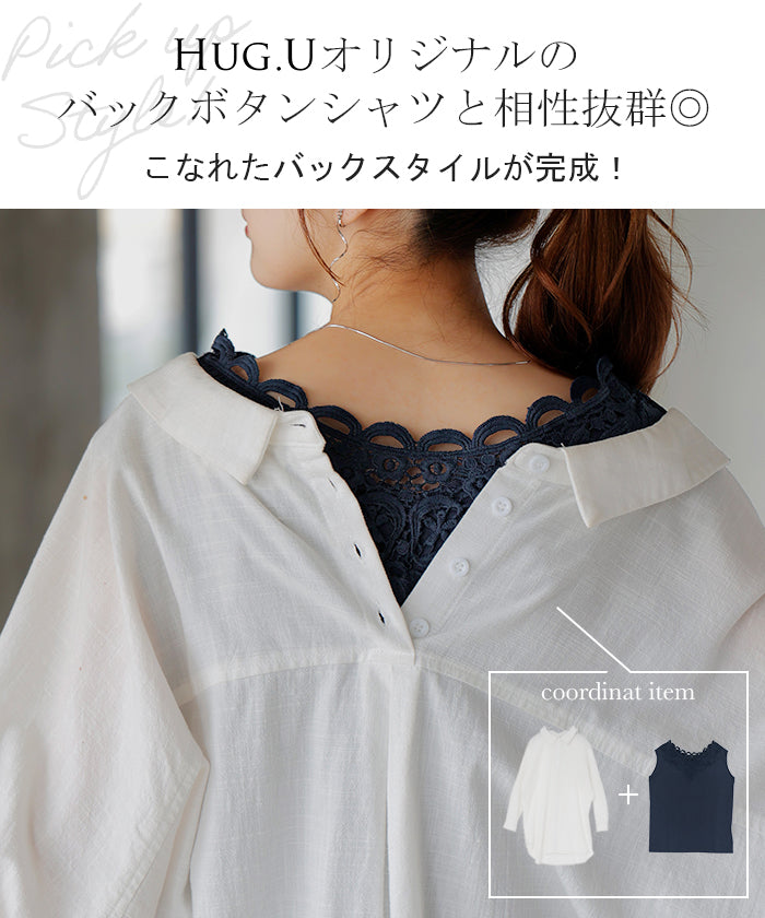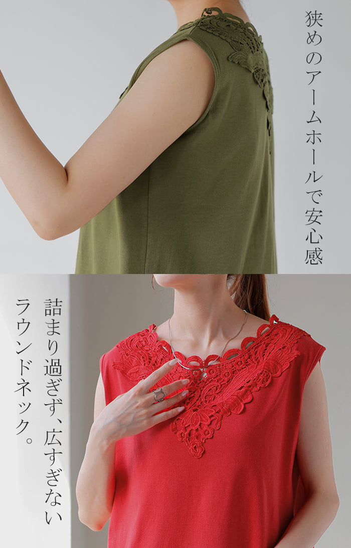 タンクトップ レース レイヤード インナー トップス タンク レディース カットソー 花柄 ノースリーブ キャミソール ロング クルーネック ロングタンク 重ね着 長い 無地 ゆったり カラバリ シンプル 体型カバー きれいめ 大人 黒 赤 春 夏 HUG.U メール便