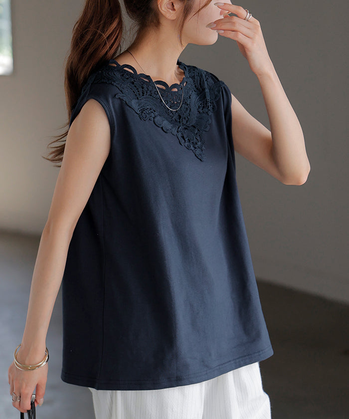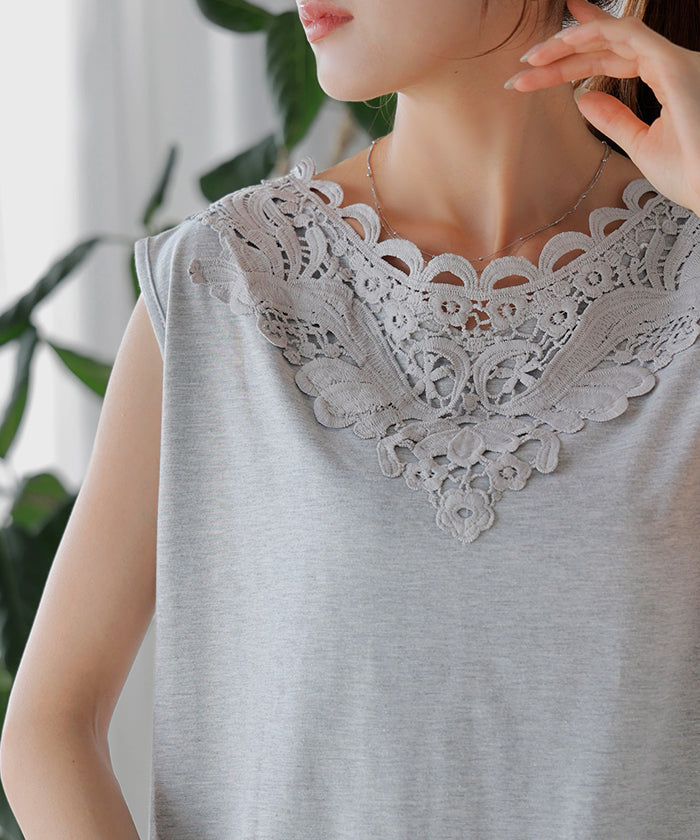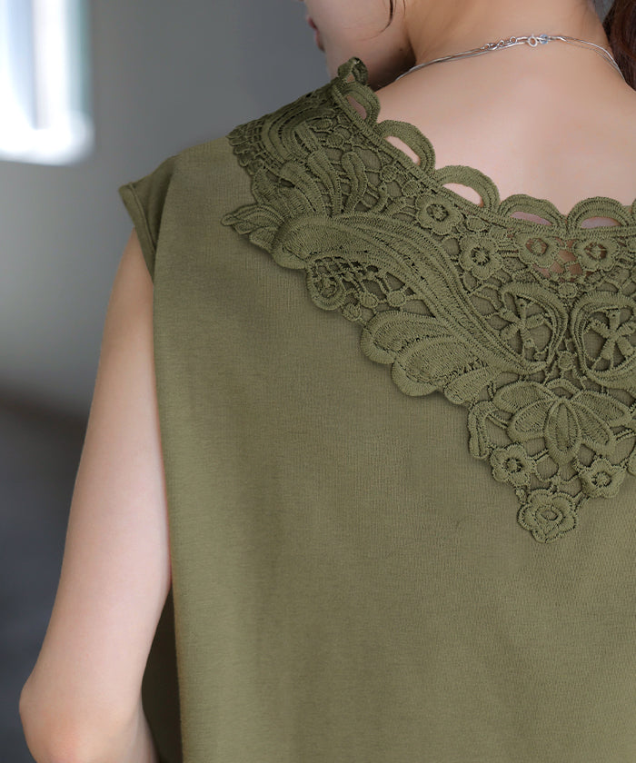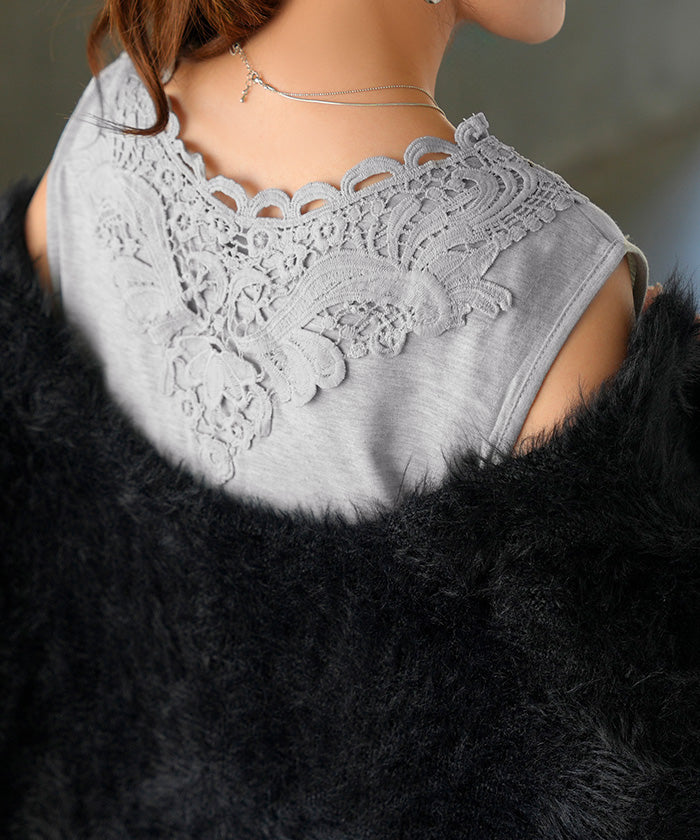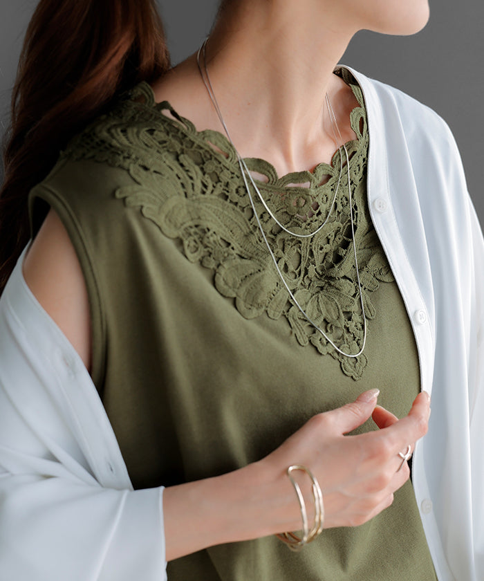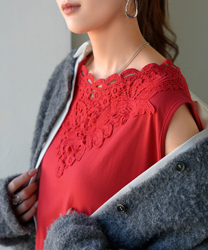 タンクトップ レース レイヤード インナー トップス タンク レディース カットソー 花柄 ノースリーブ キャミソール ロング クルーネック ロングタンク 重ね着 長い 無地 ゆったり カラバリ シンプル 体型カバー きれいめ 大人 黒 赤 春 夏 HUG.U メール便