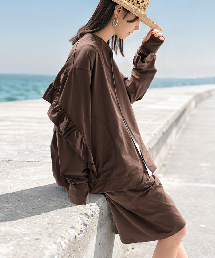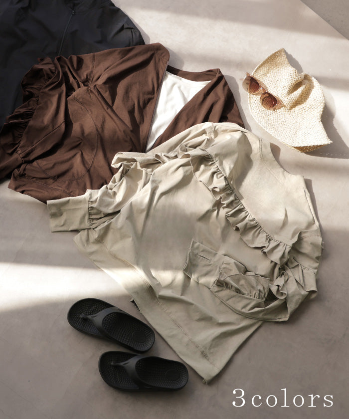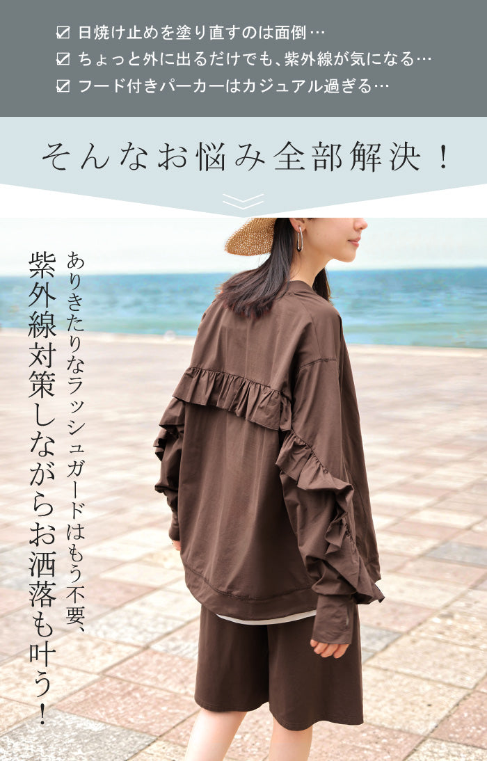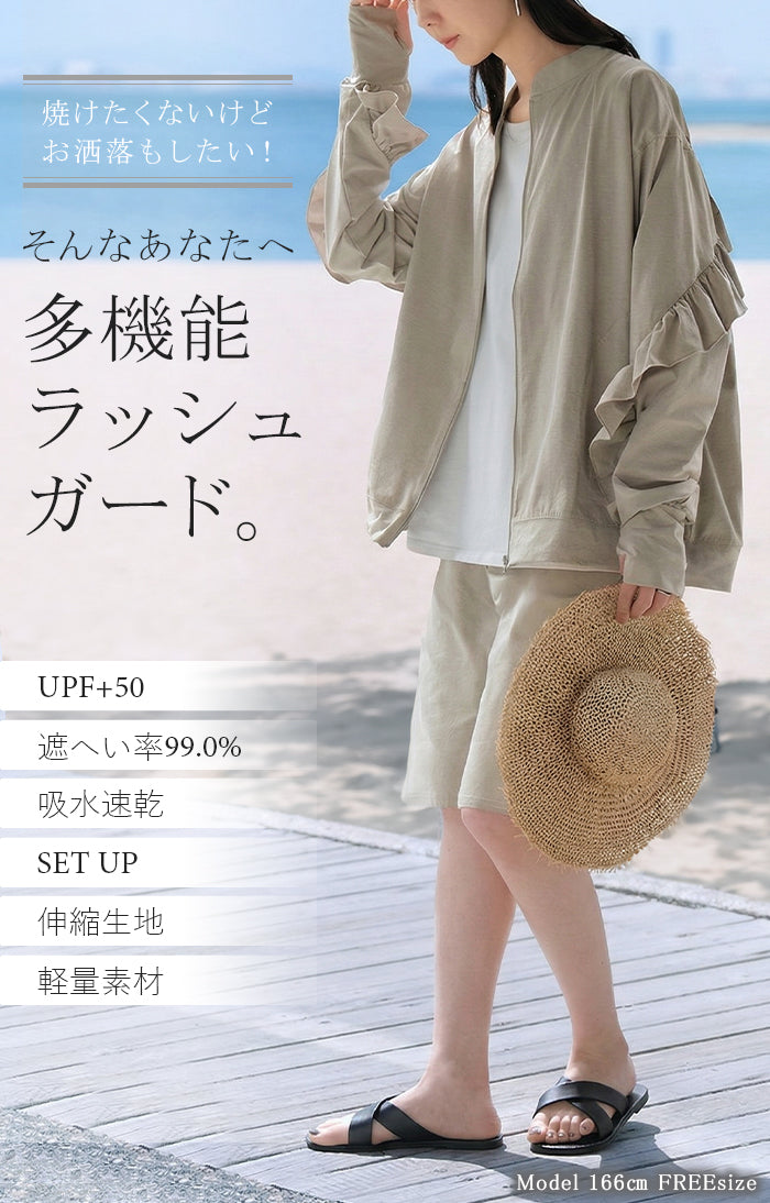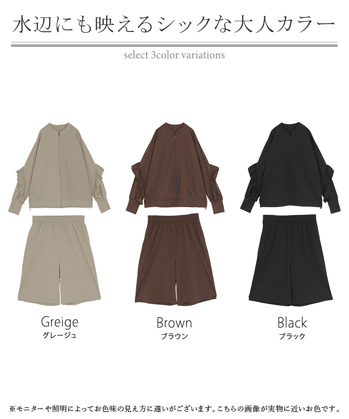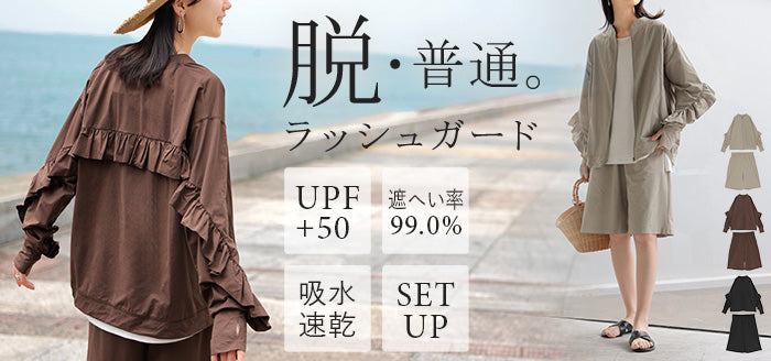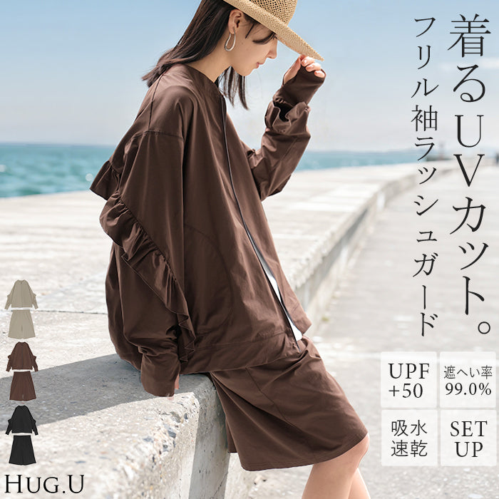 2026SS新作 ラッシュガード 「 UVカット 99%以上」水陸両用 上下 2点セット レディース 長袖 トップス アウター パンツ ハーフパンツ 紫外線対策 接触冷感 吸水 速乾 長い ロング 膝下 ストレッチ プール 海 海水浴 スポーツ 黒 ブラウン 春 夏 HUG.U