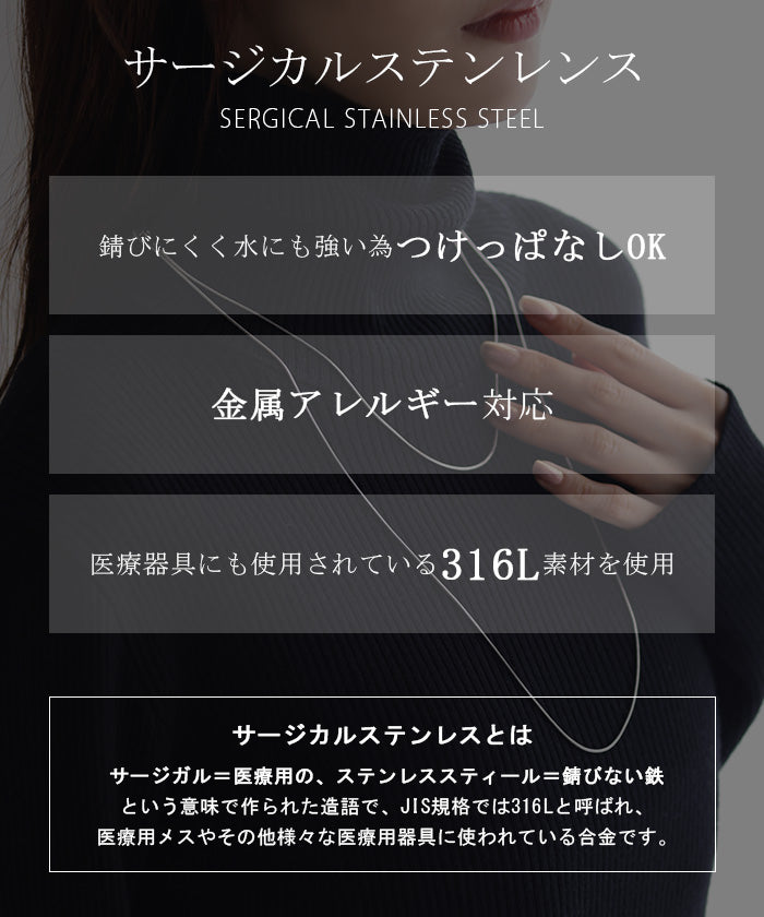 サージカルステンレス素材は基本的に変色しにくい素材ですが、皮脂汚れや化粧品の付着によりくもって見える場合がございます。