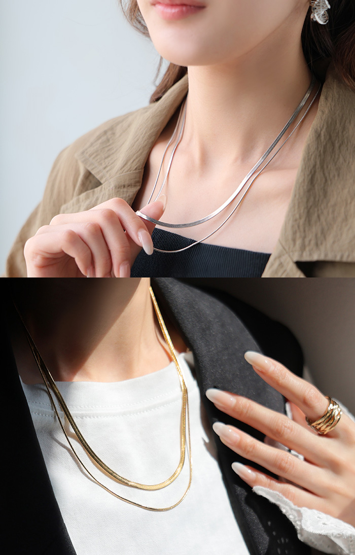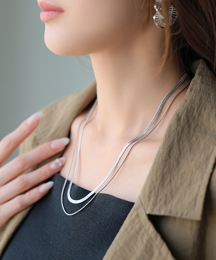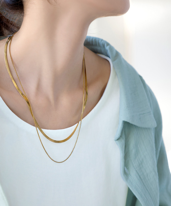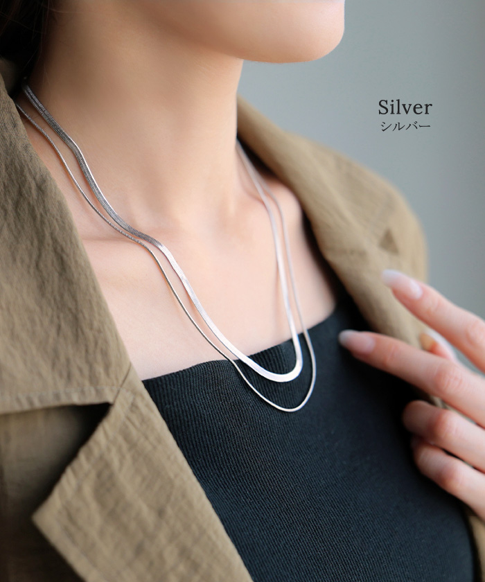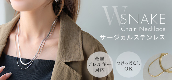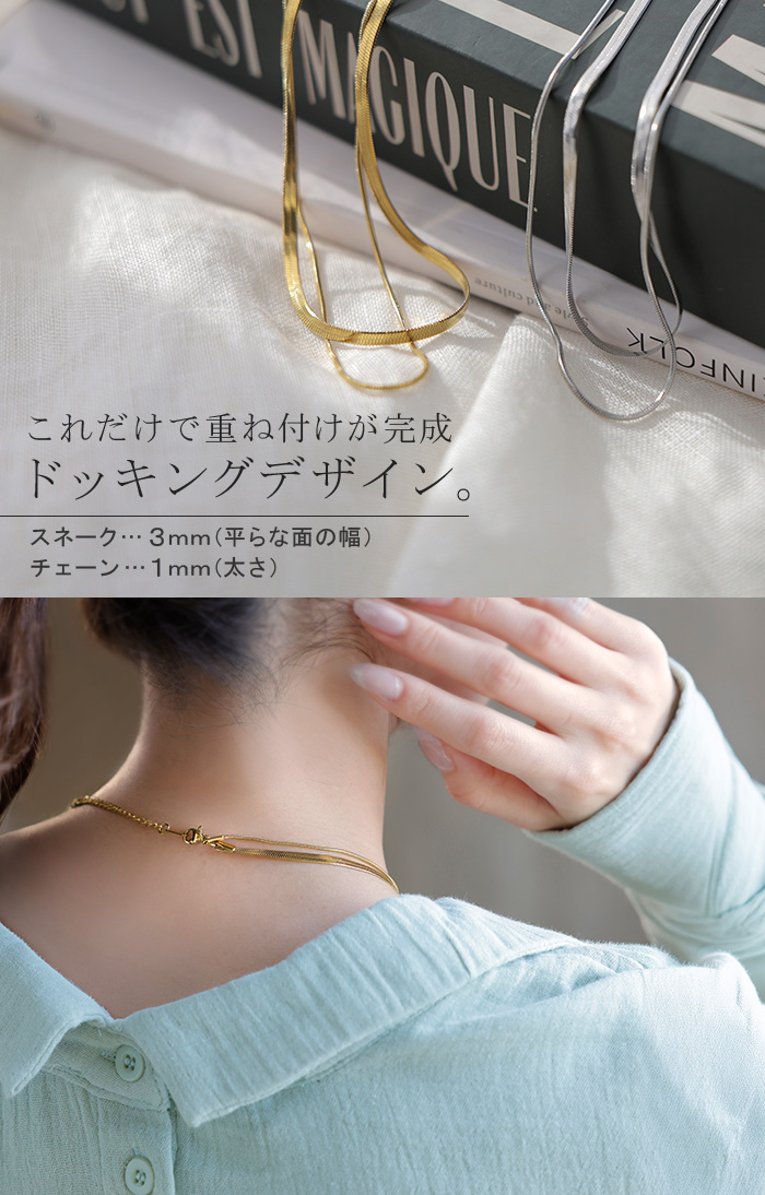 2026SS新作『 サージカルステンレス 』 2連 ネックレス ■一部5月下旬入荷 アクセサリー シルバー ゴールド 金属アレルギー 金アレ 錆びにくい セット アクセ スネークネックレス チェーンネックレス ロングネックレス アレルギー対応 レディース ロング おしゃれ 女性 大人 春 夏 HUG.U メール便