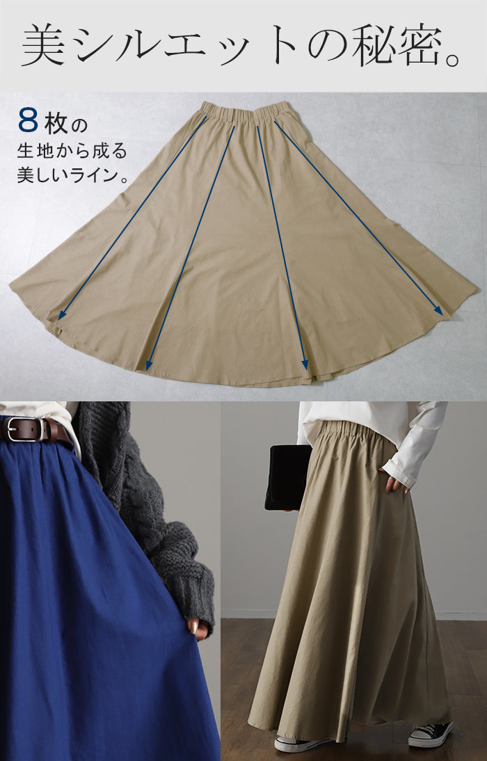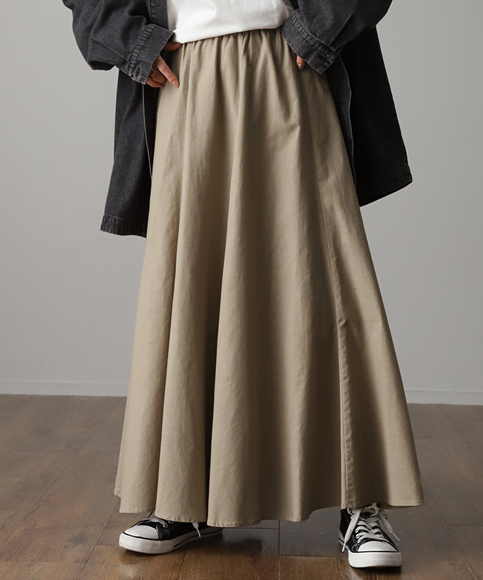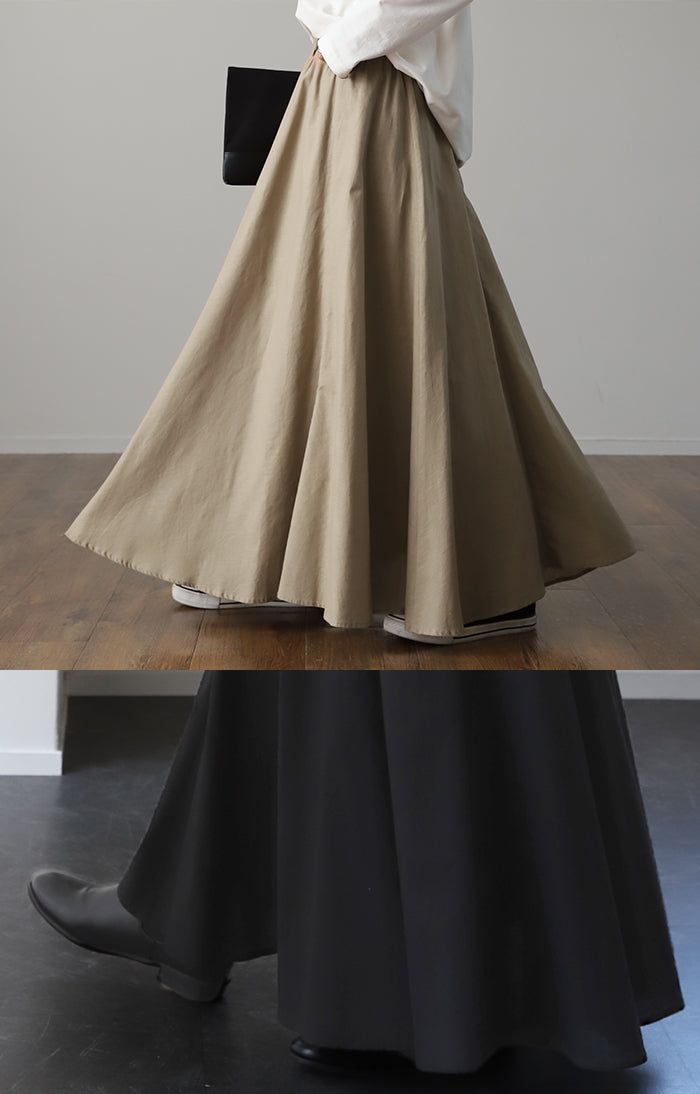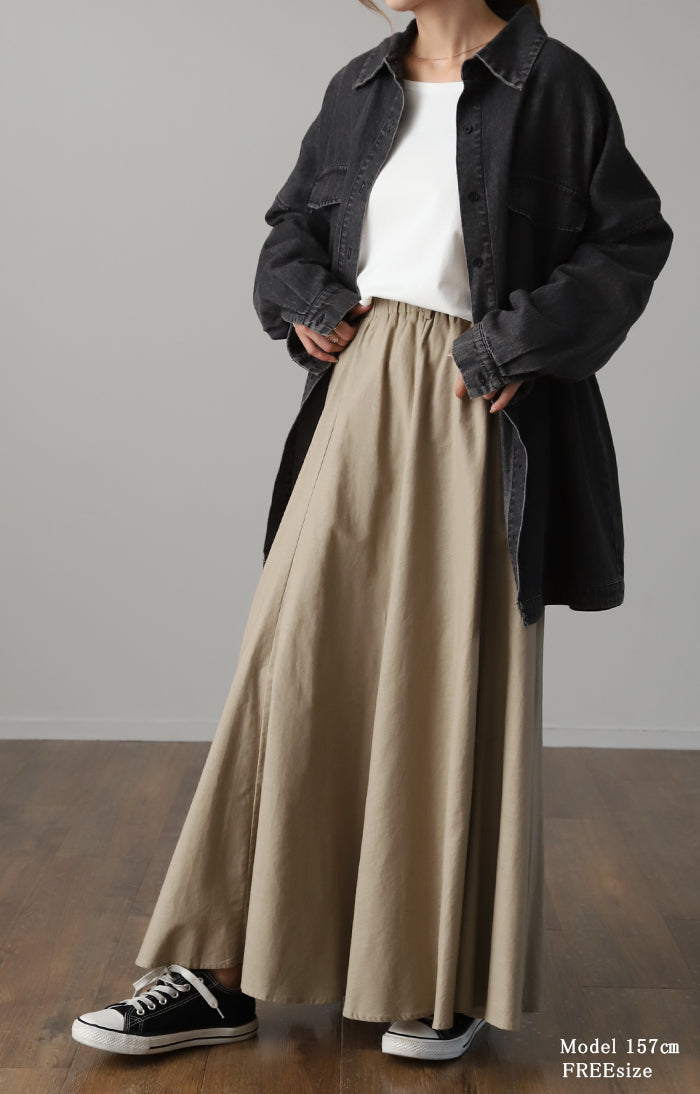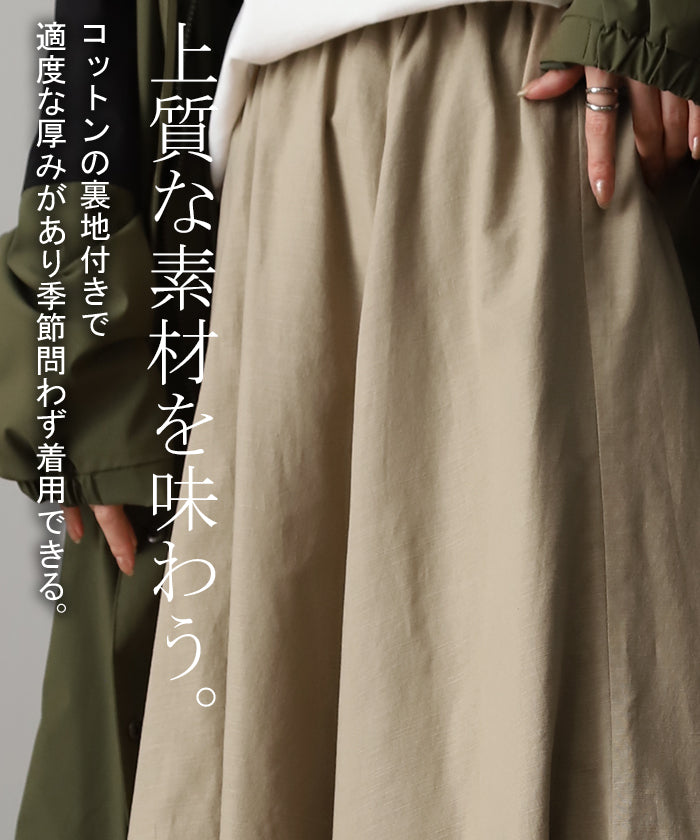リネンのさらりとした風合いとナチュラルな表情を活かしたシンプルなスカートです。大胆に広がるシルエットがカジュアルな中にも上品な女性らしさを感じさせる1枚。ふわっと広がるフレアが涼しく快適で1枚でコーデが決まる主役級スカート。