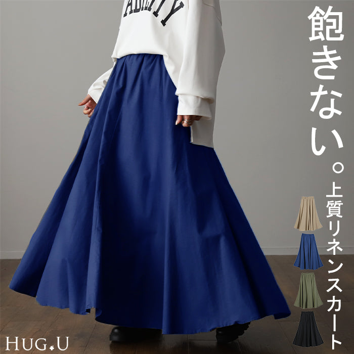 麻100% 「 8枚 リネン 」 スカート Aライン ロングスカート レディース カラースカート カラー 麻 マキシ 無地 リゾート ロング マキシスカート コットンリネン きれいめ 体型カバー ボトムス フレアスカート 大きいサイズ ブルー 黒 青 春 夏 HUG.U