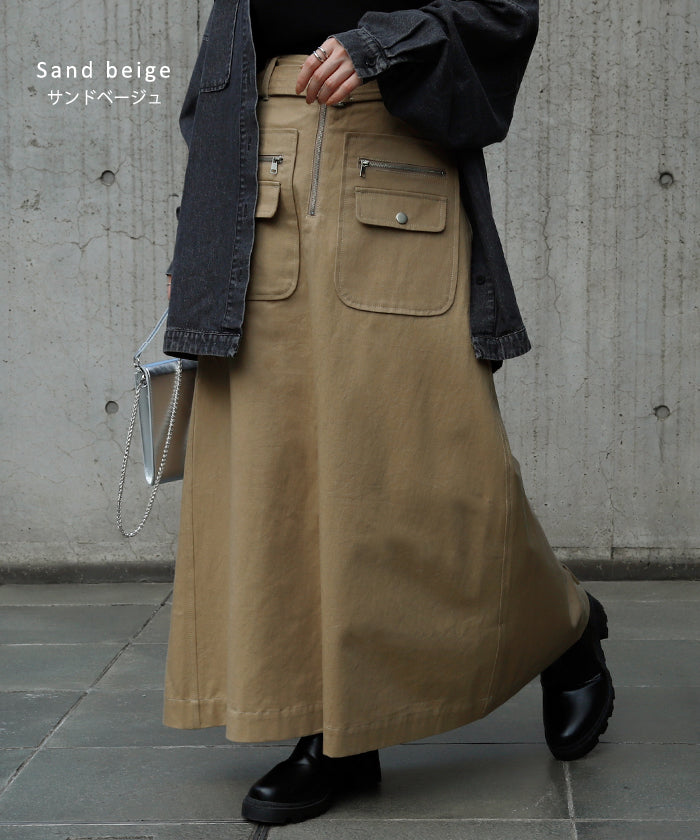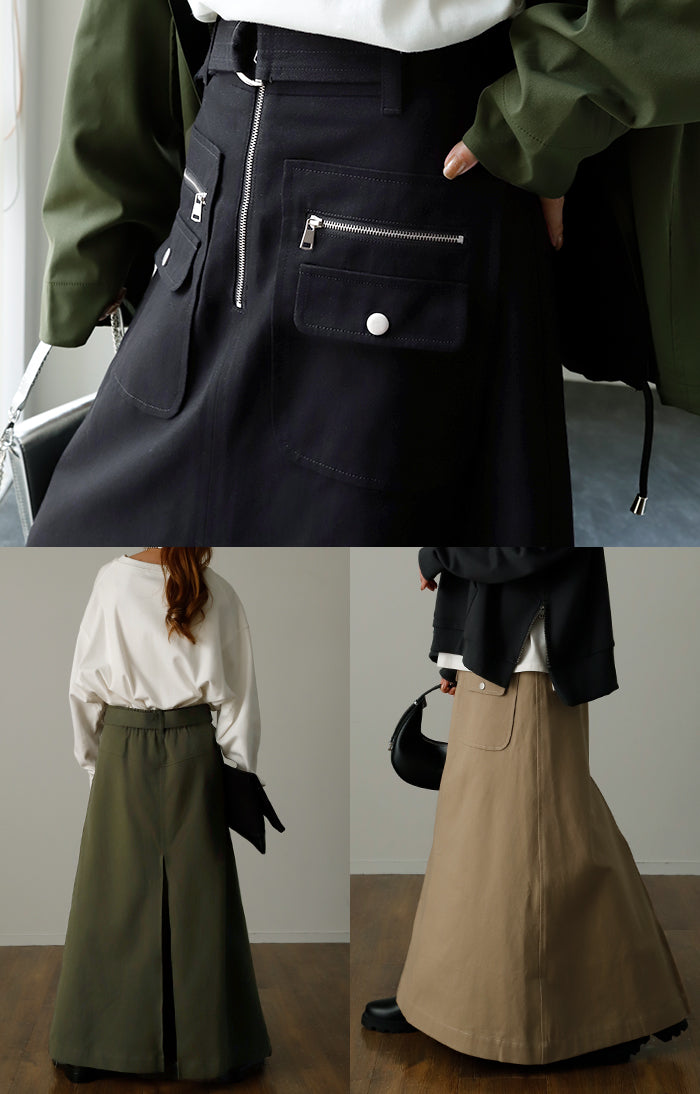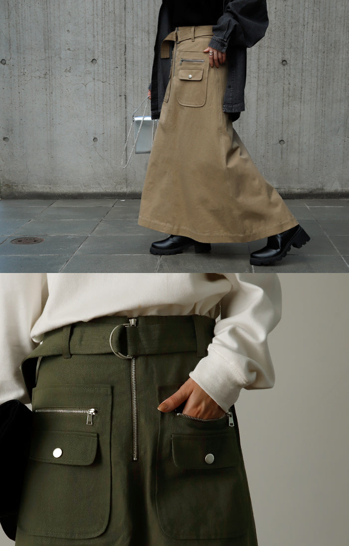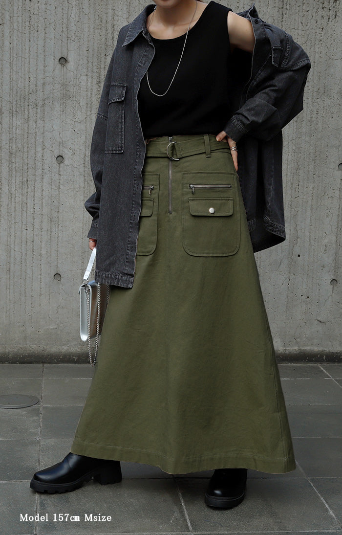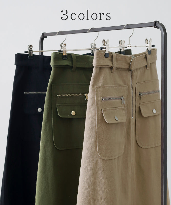 「 普通は嫌。」 チノ スカート Aライン ポケット チノスカート Aラインスカート レディース ベルト ボトムス ロングスカート ロング マキシ ゴム ウエストゴム ジップ 大きいサイズ 無地 黒 ブラック 春 夏 ビジュアル系 HUG.U
