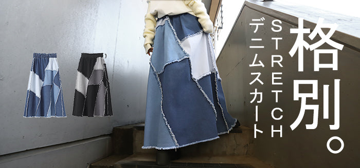 パッチワークデザインを施した存在感抜群のデニムスカートです。特別感溢れる加工デザインが穿く人を魅力的に仕立ててくれる。動くと揺れる美しいフレアシルエットで他と差がつく個性派スカートです。