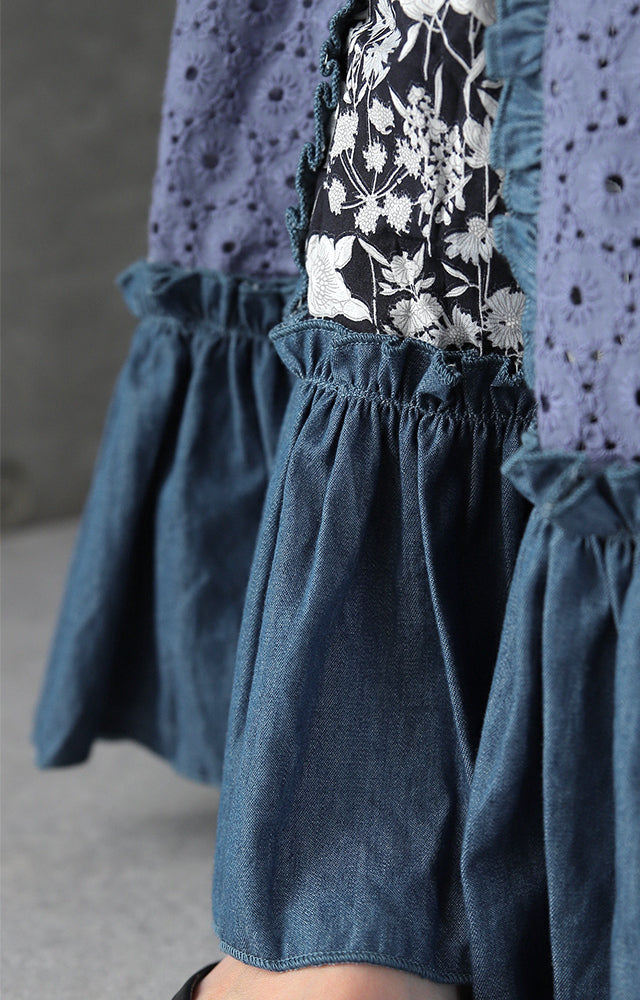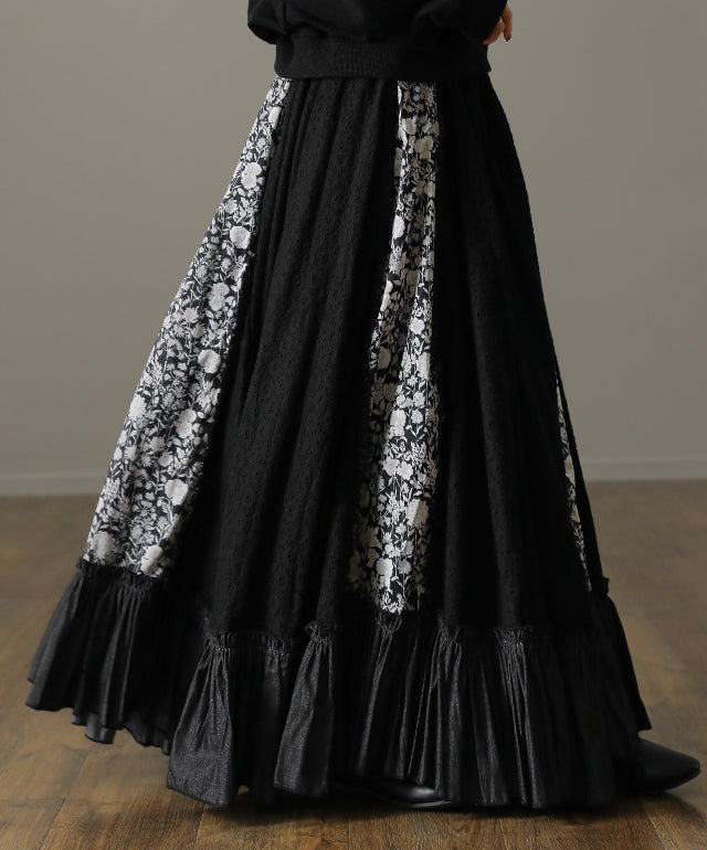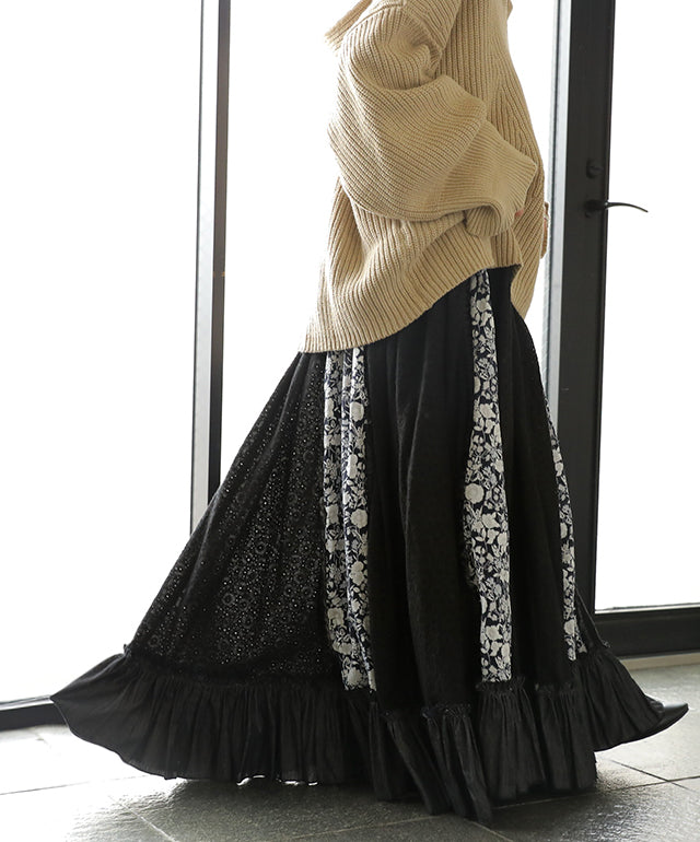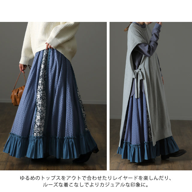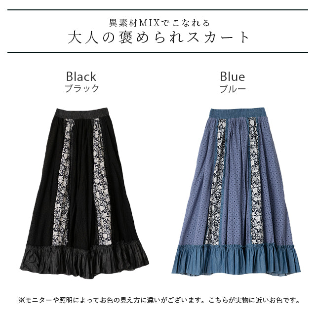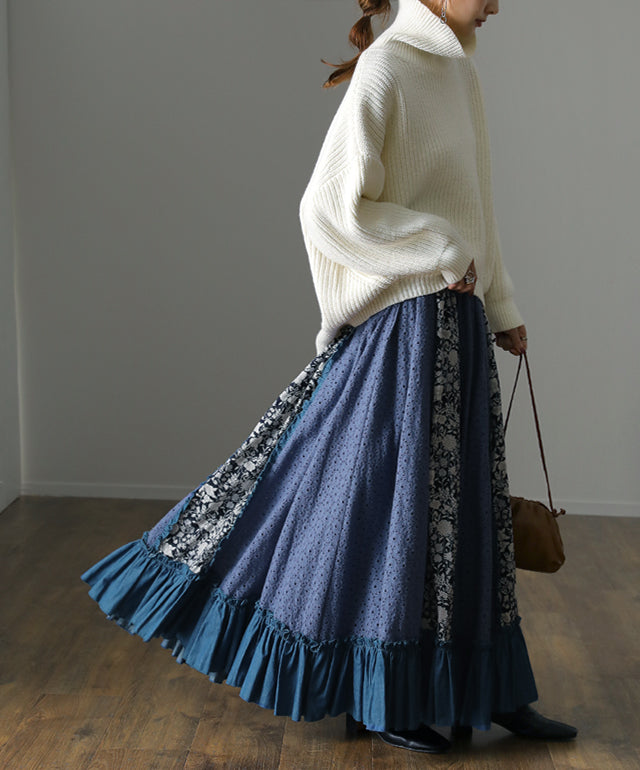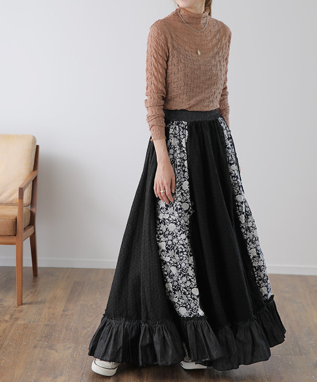 スカート ロングスカート ロング マキシスカートマキシ 花柄 フリルスカート 体型カバー デニムスカート レーススカート レース フレア フレアスカート ウエストゴム レディース デニム デニムスカート レトロ 大きいサイズ 春 夏 x237 HUG.U