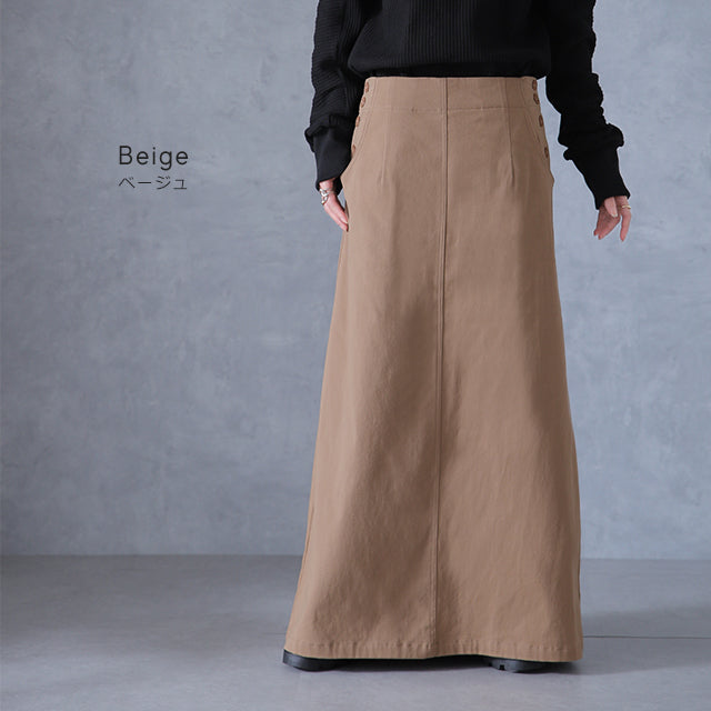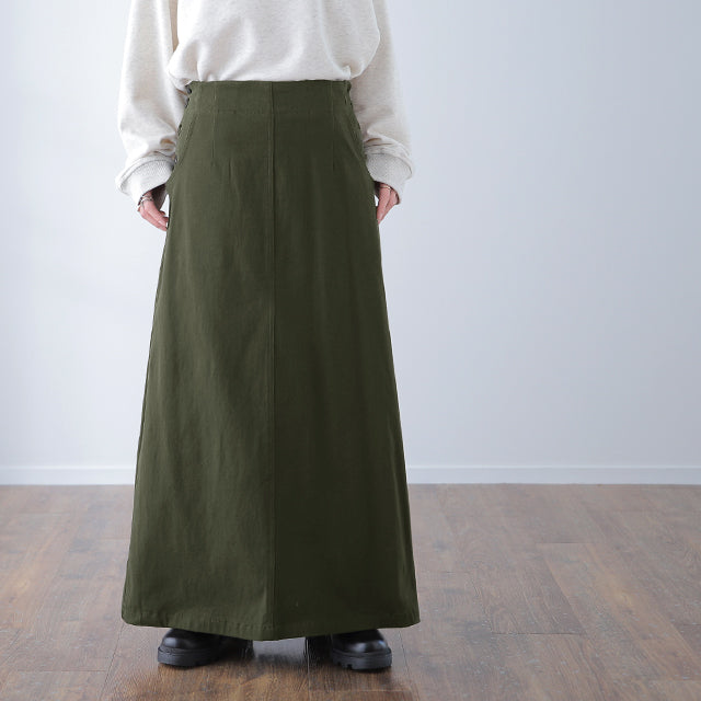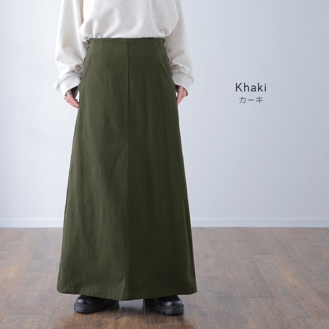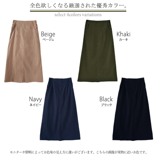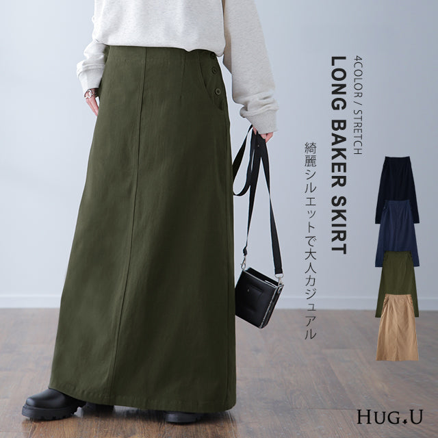 スカート ロングスカート マキシスカート ベイカースカート ロング マキシ ベイカー 体型カバー Aライン フレア フレアスカート 無地 シンプル チノ ミリタリー レディース アウトドア 黒 カーキ ネイビー ベージュ 大きいサイズ 春 夏 HUG.U