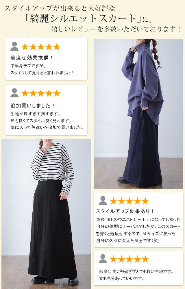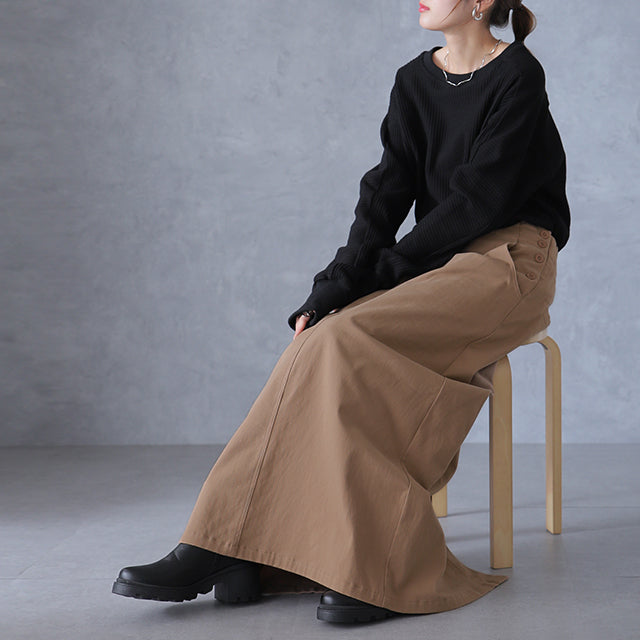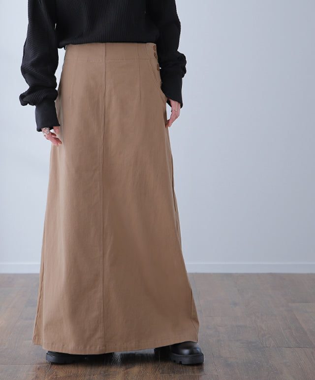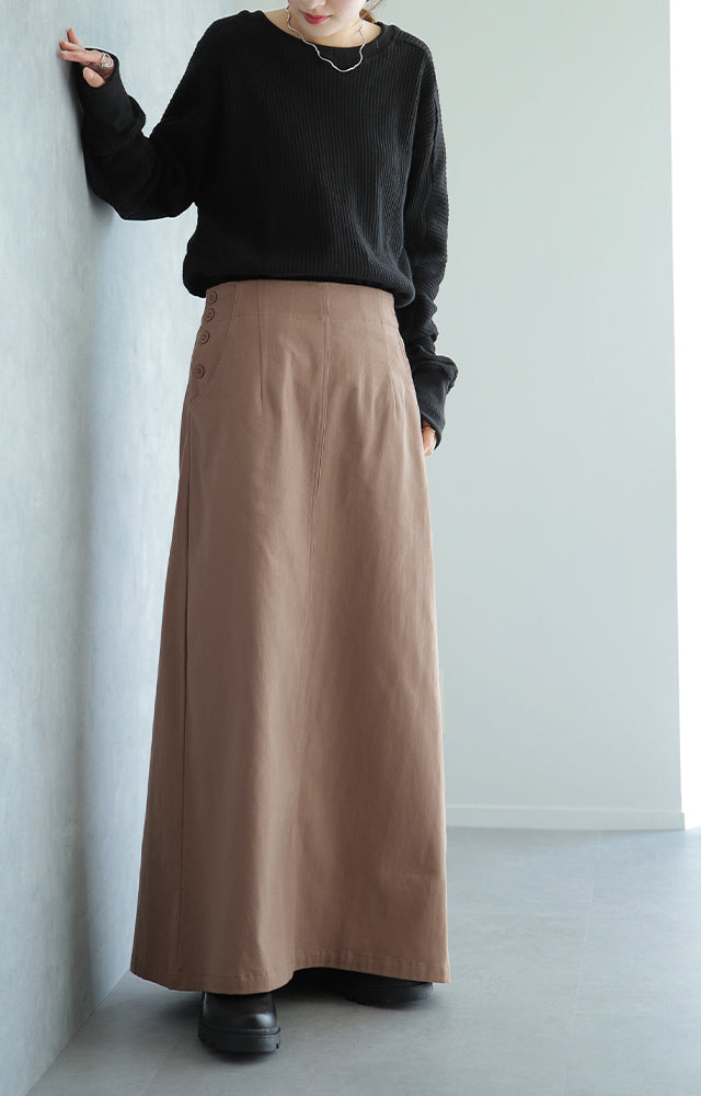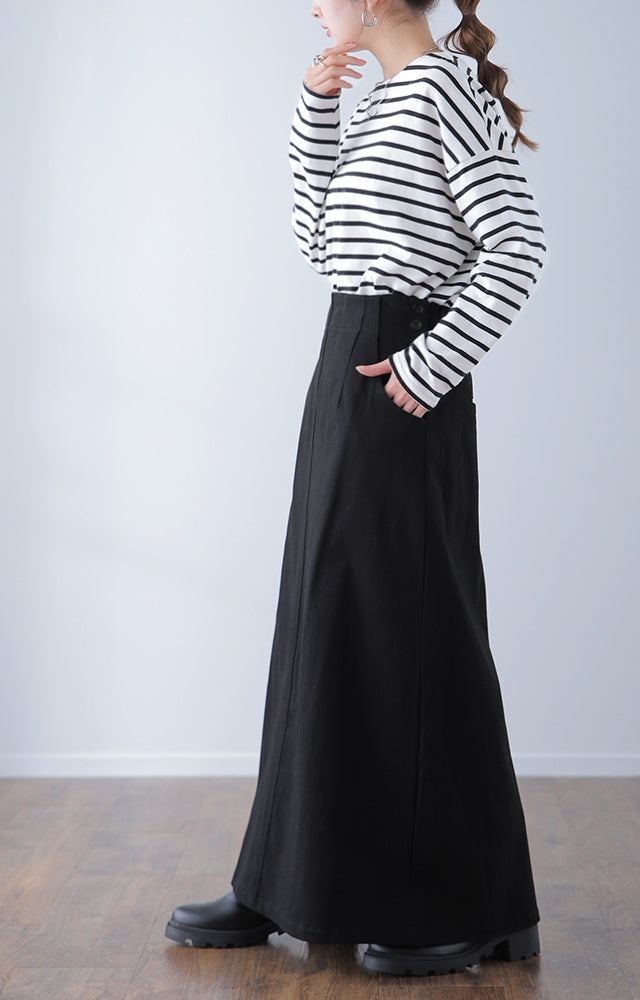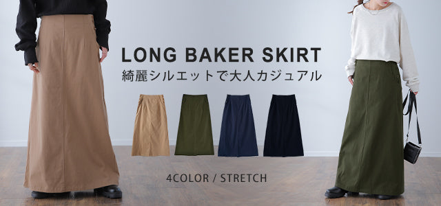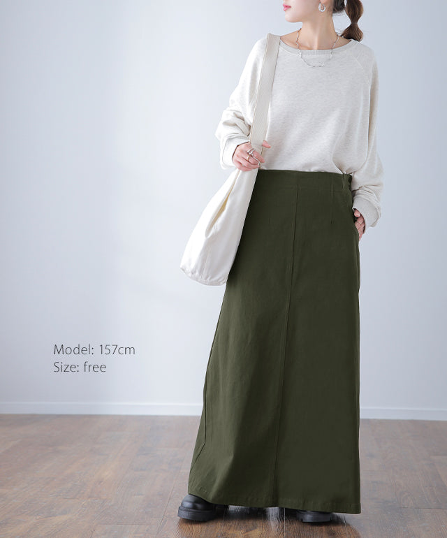 超伸びる!ストレッチがきいた履き心地が気持ちいいロングスカート。ストレスフリーなストレッチ素材なのにトレンドのワークっぽさも取り入れカジュアルスタイルと好相性です。穿きやすいのに上質感もあり、年中使える無敵スカートです。