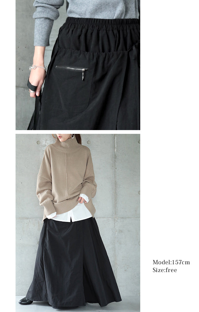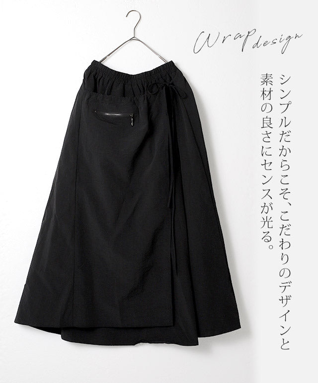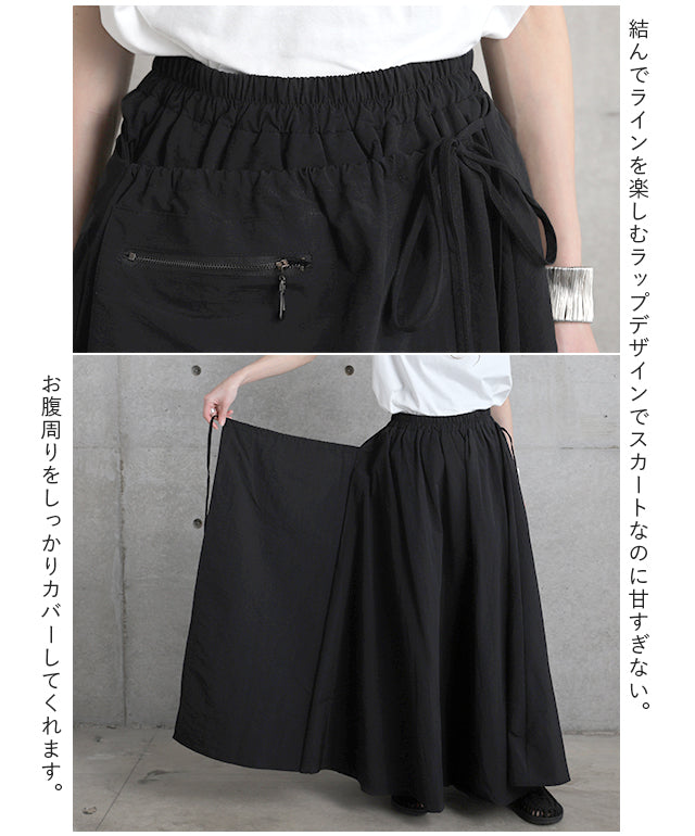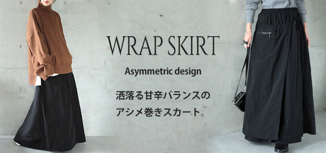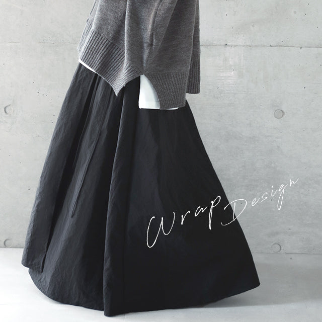 お洒落なデザインの巻きスカート。紐を結んでラインを楽しむデザインでスカートなのに甘すぎず、お腹周りもしっかりとカバーしてくれます。シンプルでありながら素材感やこだわりデザインで周りと差がつくスカートです。