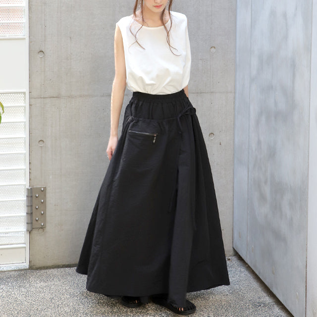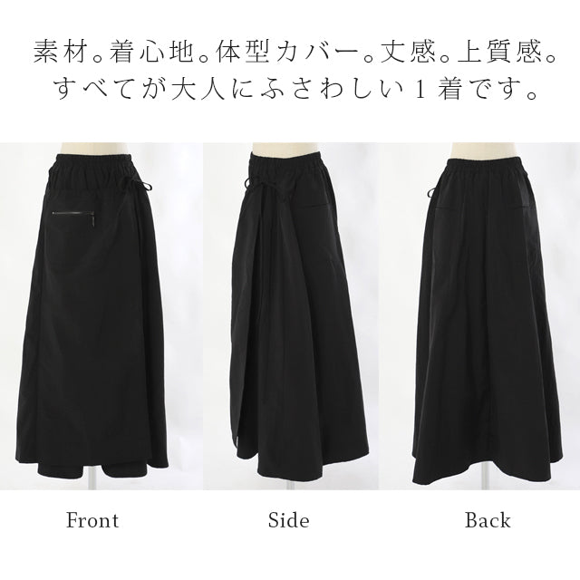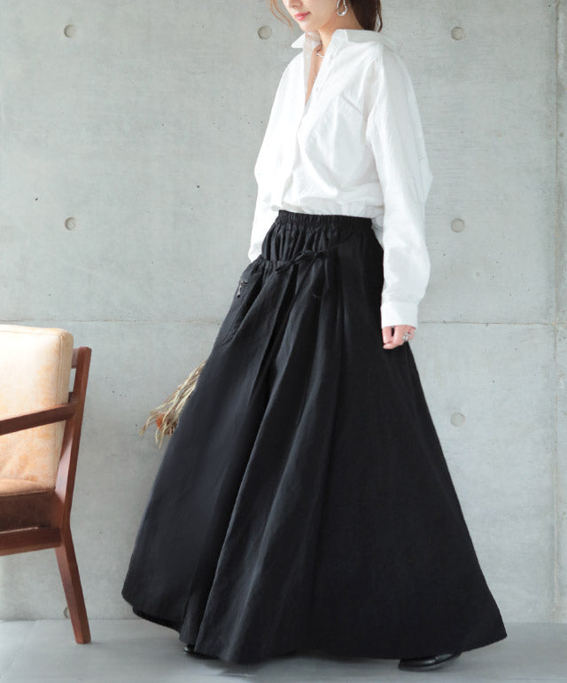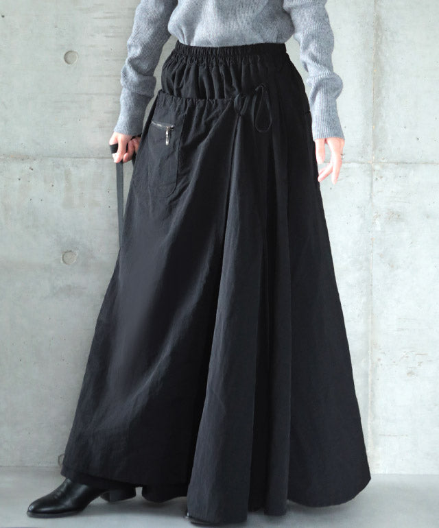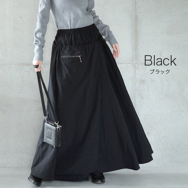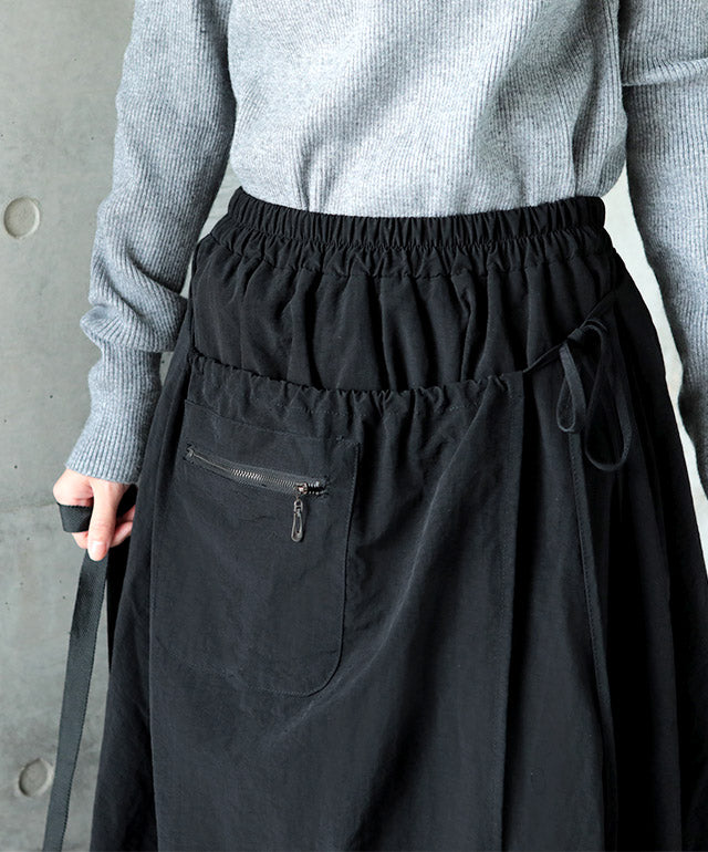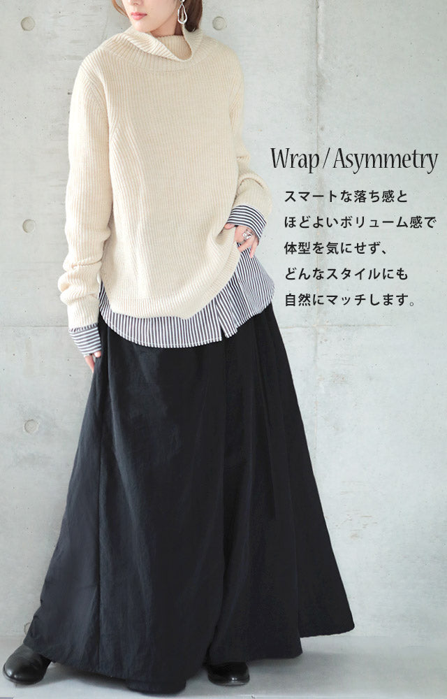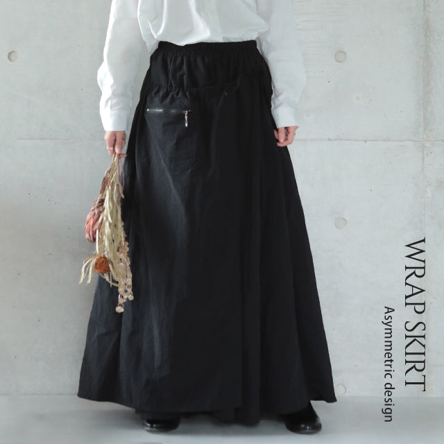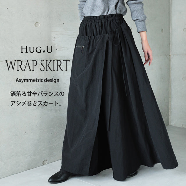 スカート ロングスカート ロング ラップスカート 巻きスカート マキシスカート マキシ アシメ ウエストゴム ゴム フレア フレアスカート Aラインスカート ワークスカート ワーク 無地 大きいサイズ 体型カバー 黒 春 夏 HUG.U