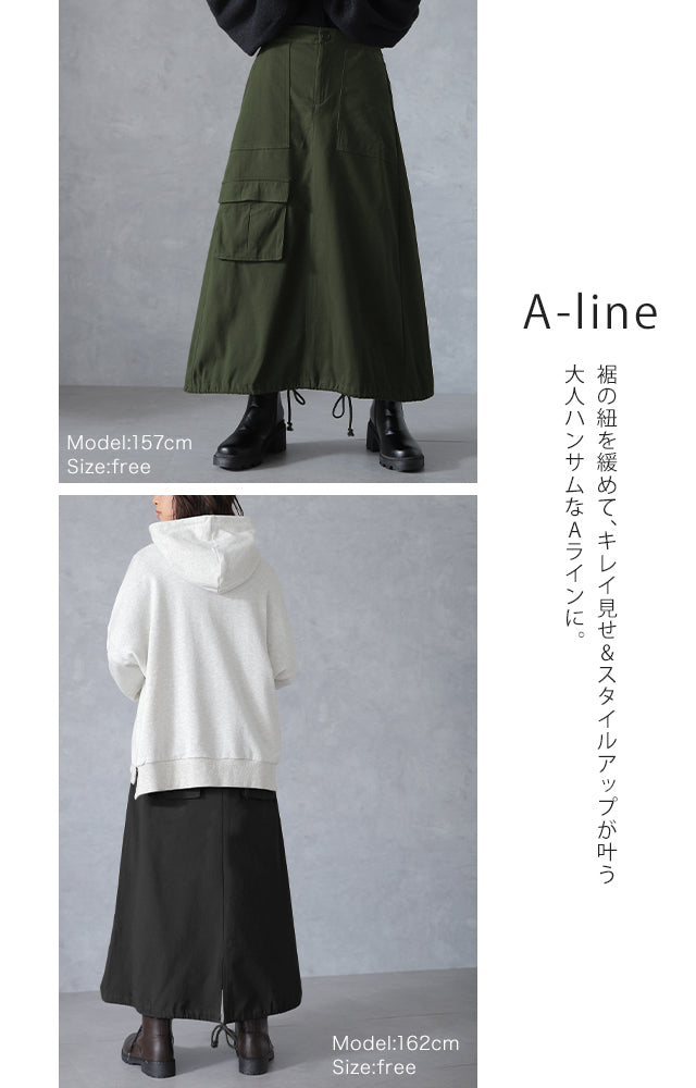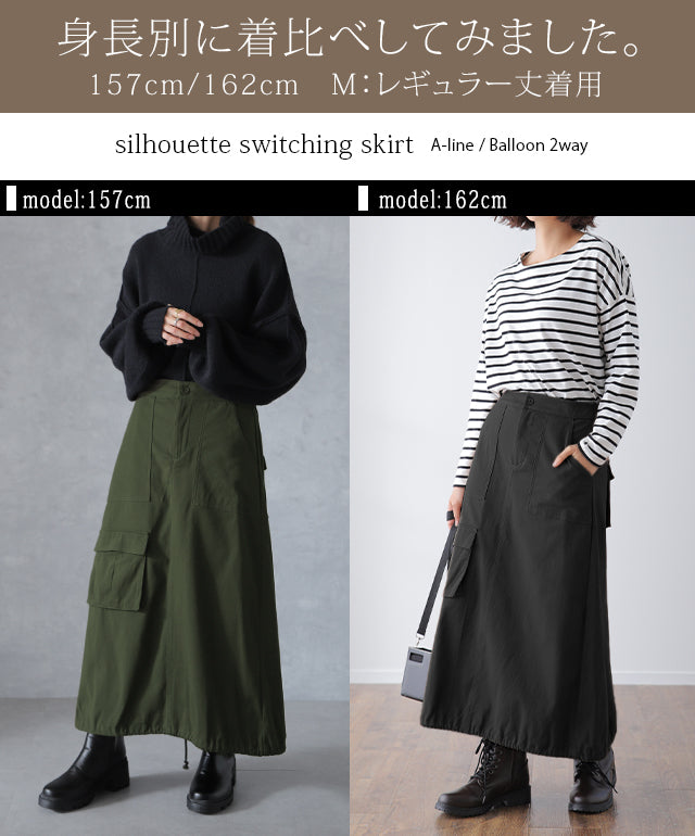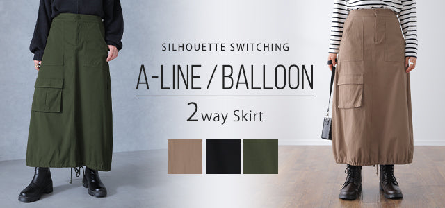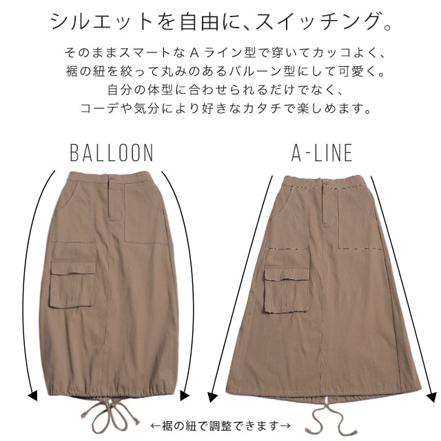 シルエットを操る「 2way 」デザインスカート スカート レディース ロングスカート ベイカースカート ロング マキシ ベイカー 大きいサイズ 体型カバー Aライン フレア フレアスカート バルーン 無地 シンプル ミリタリー 春 夏 HUG.U