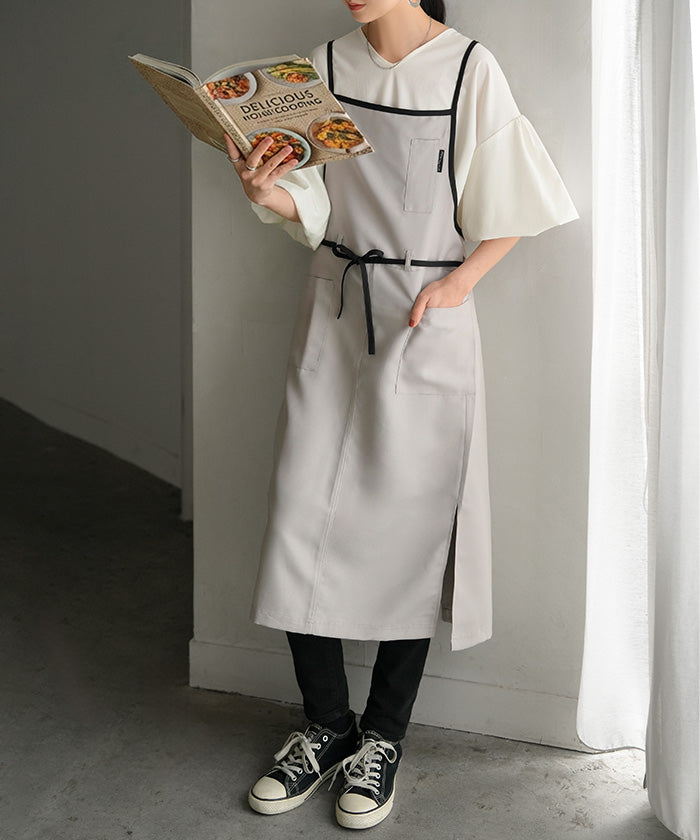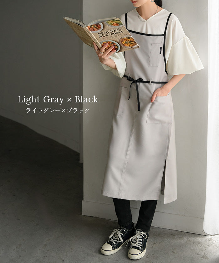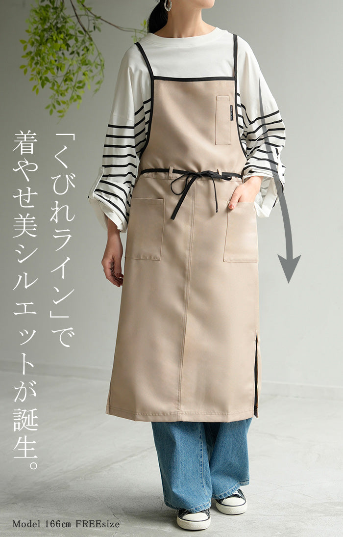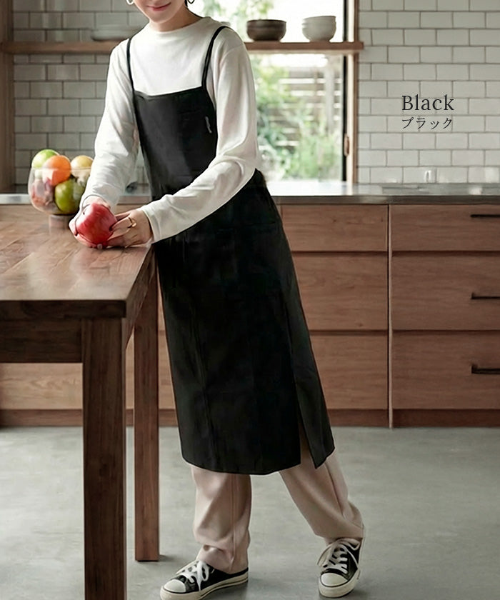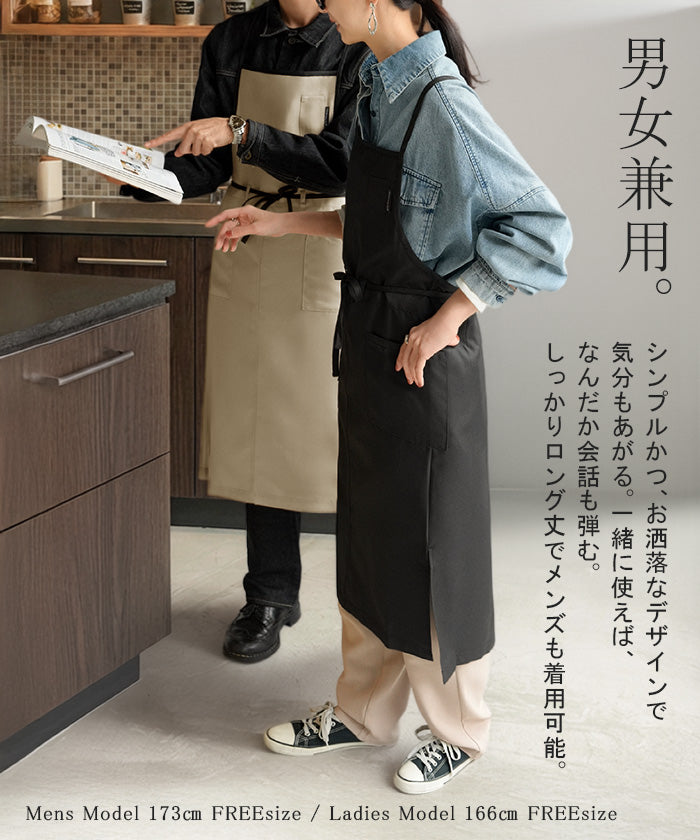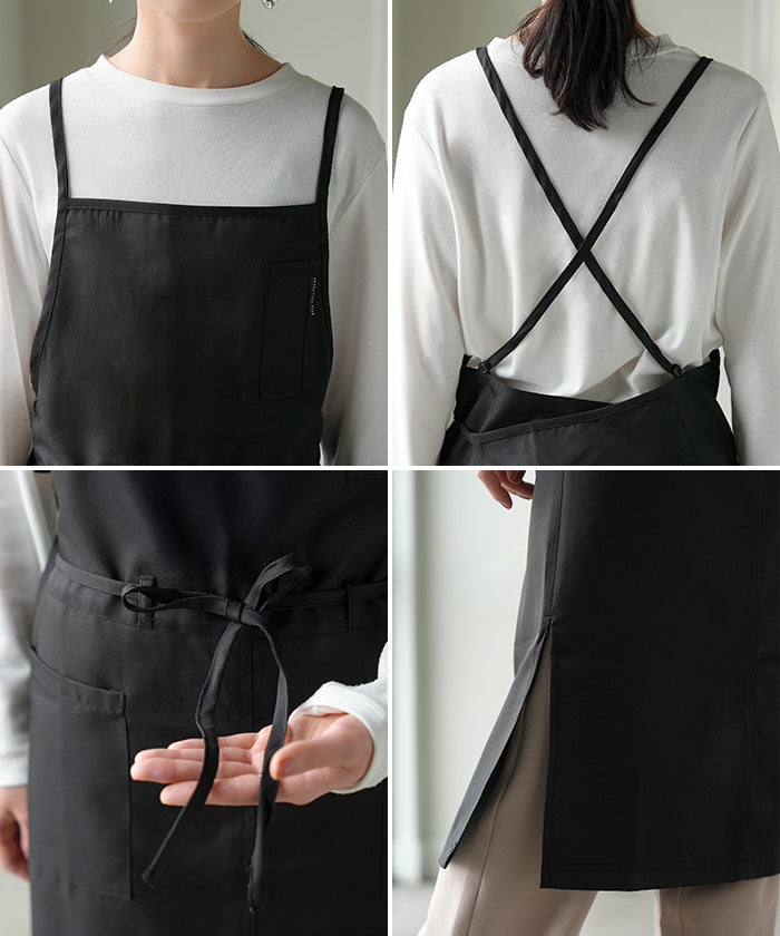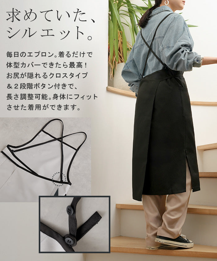 2025AW新作 エプロン バッククロス 撥水 軽量 ロング レディース h型 ワークエプロン ロングエプロン ロング丈 軽い 薄い メンズ 大人 無地 シンプル おしゃれ かわいい 北欧 カフェ 韓国 保育士 レストラン 美容師 エステ お尻が隠れる ナチュラル 黒 秋 冬 HUG.U メール便