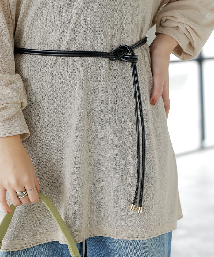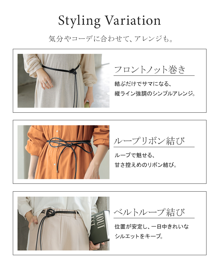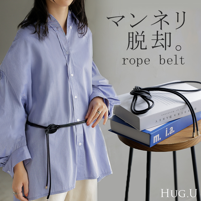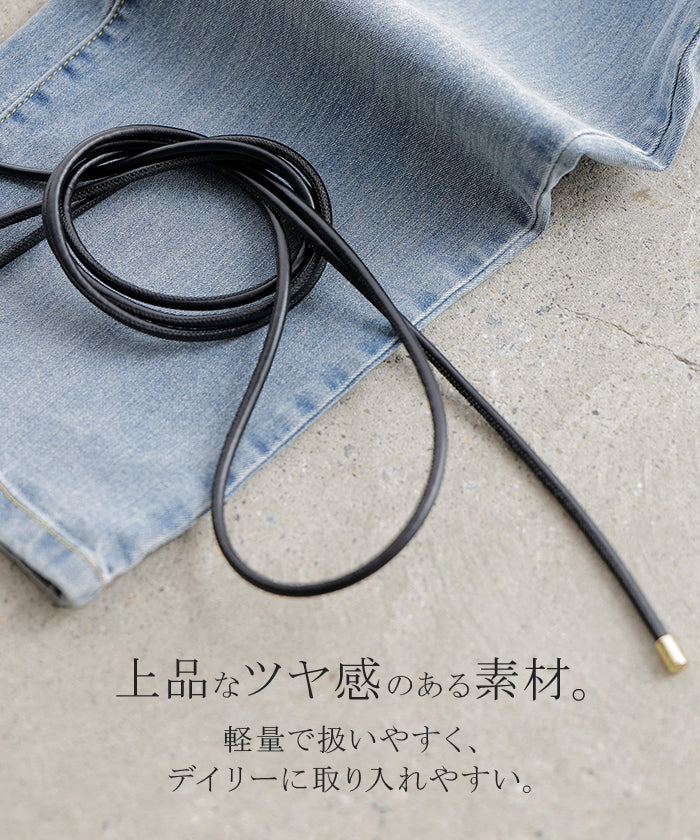 2025AW新作 ベルト ロープ 紐 レディース アクセサリー アクセ 細ベルト 細い ナローベルト ロープベルト ウエストマーク レザー 巻きベルト ダブル 2重 軽量 金具 ゴールド シンプル おしゃれ カジュアル きれいめ フリーサイズ 穴なし 黒 ブラック 秋 冬 HUG.U メール便