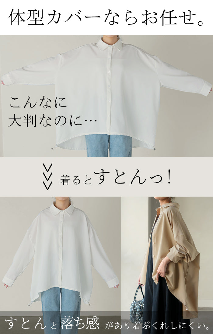 シャツ チュニック ロング レディース トップス ロングシャツ ブラウス ロングブラウス Vネック 長袖 無地 ドロスト ゆったり シンプル 大きいサイズ 体型カバー 前開き お尻が隠れる きれいめ 通勤 オフィスカジュアル 上品 黒 白 春 夏 HUG.U
