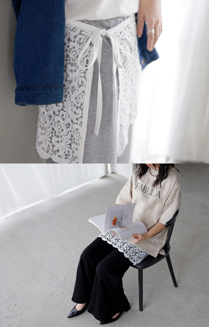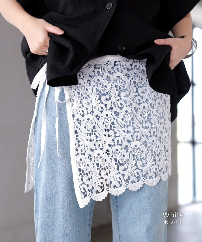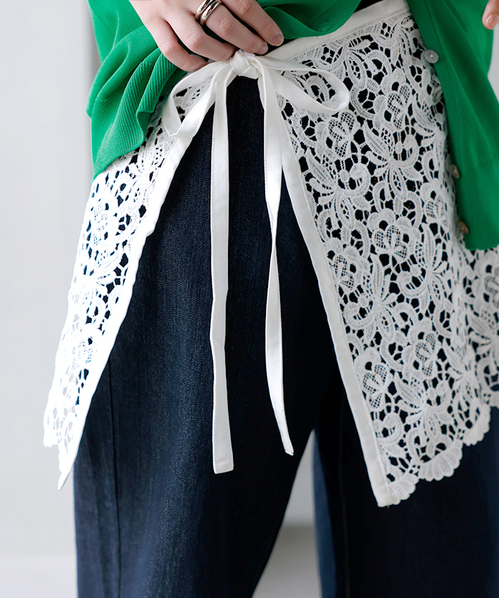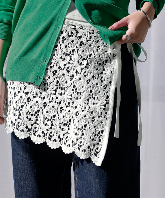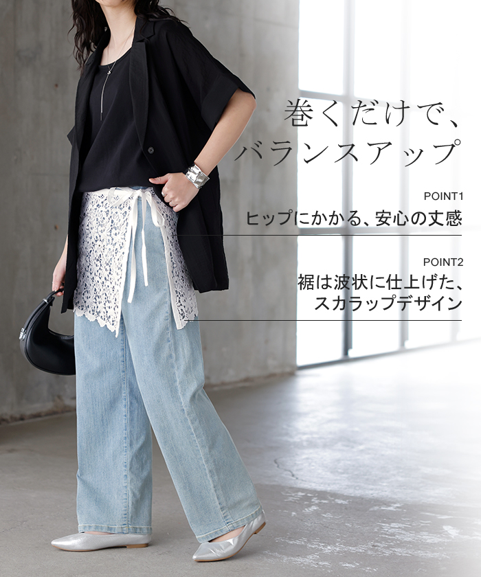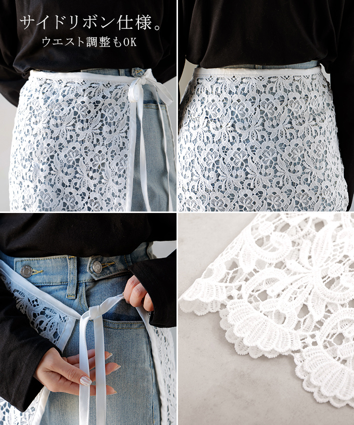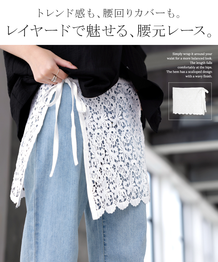 【早割10%OFF】 2026SS新作 レース 付け裾 レディース レイヤード ■2月下旬入荷 つけ裾 ラップスカート お尻が隠れる ケミカルレース 重ね着 スカラップ 刺繍 花柄 フラワー 透け感 ウエストゴム リボン 大きいサイズ 体型カバー きれいめ カジュアル 調整可能 軽い 春 夏 ホワイト 白 HUG.U メール便