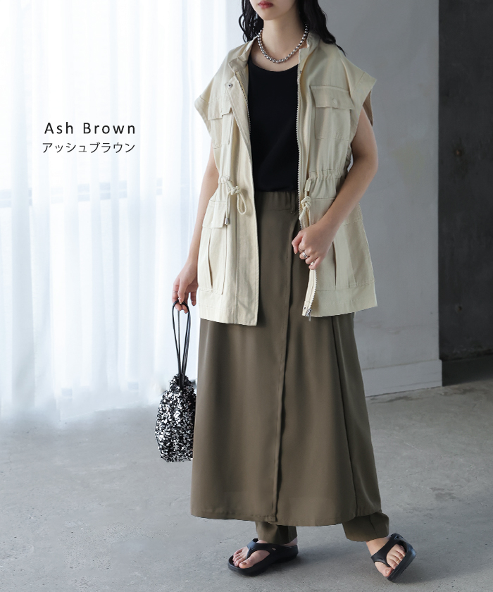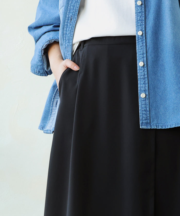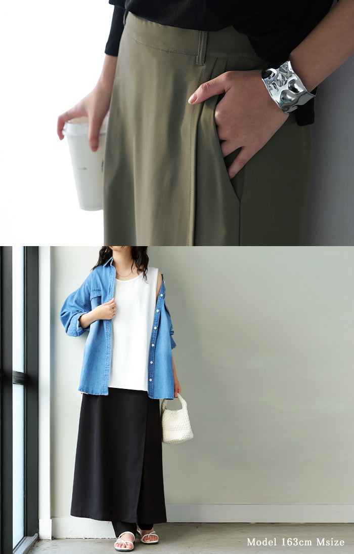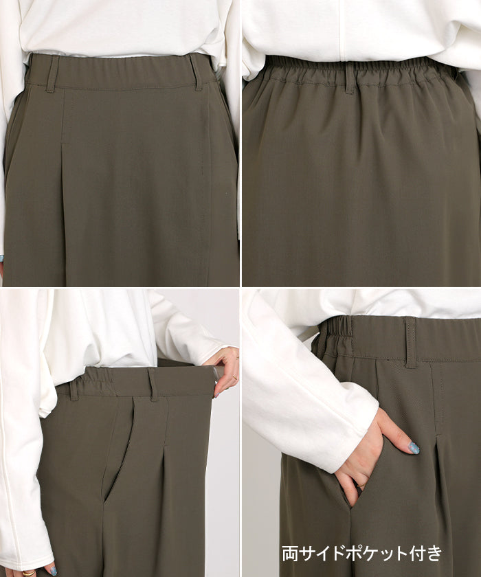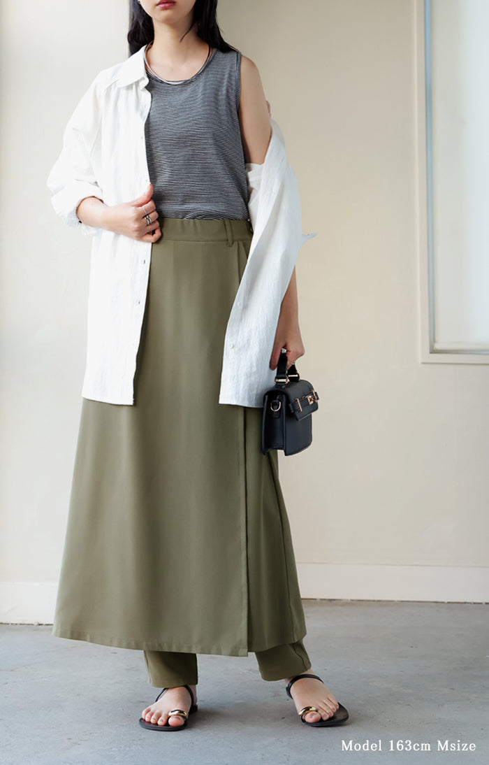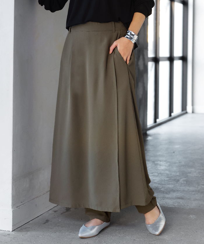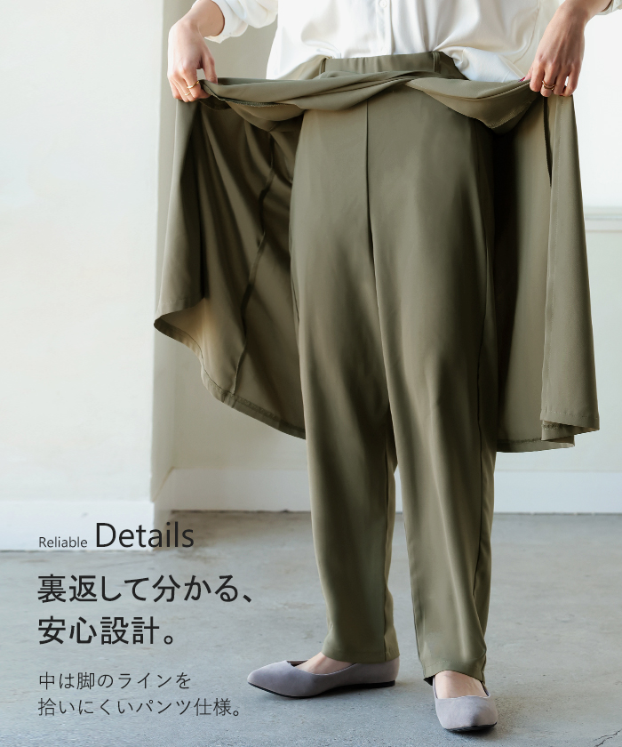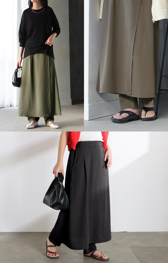 【早割10%OFF】2026SS新作 パンツ スカート レディース ボトムス スカパン フレア ラップスカート風 重ね着風 レイヤード 体型カバー ワイドパンツ ズボン ウエストゴム シワになりにくい 軽い 軽量 動きやすい きれいめ カジュアル 大きいサイズ ブラック ブラウン 春 夏 HUG.U