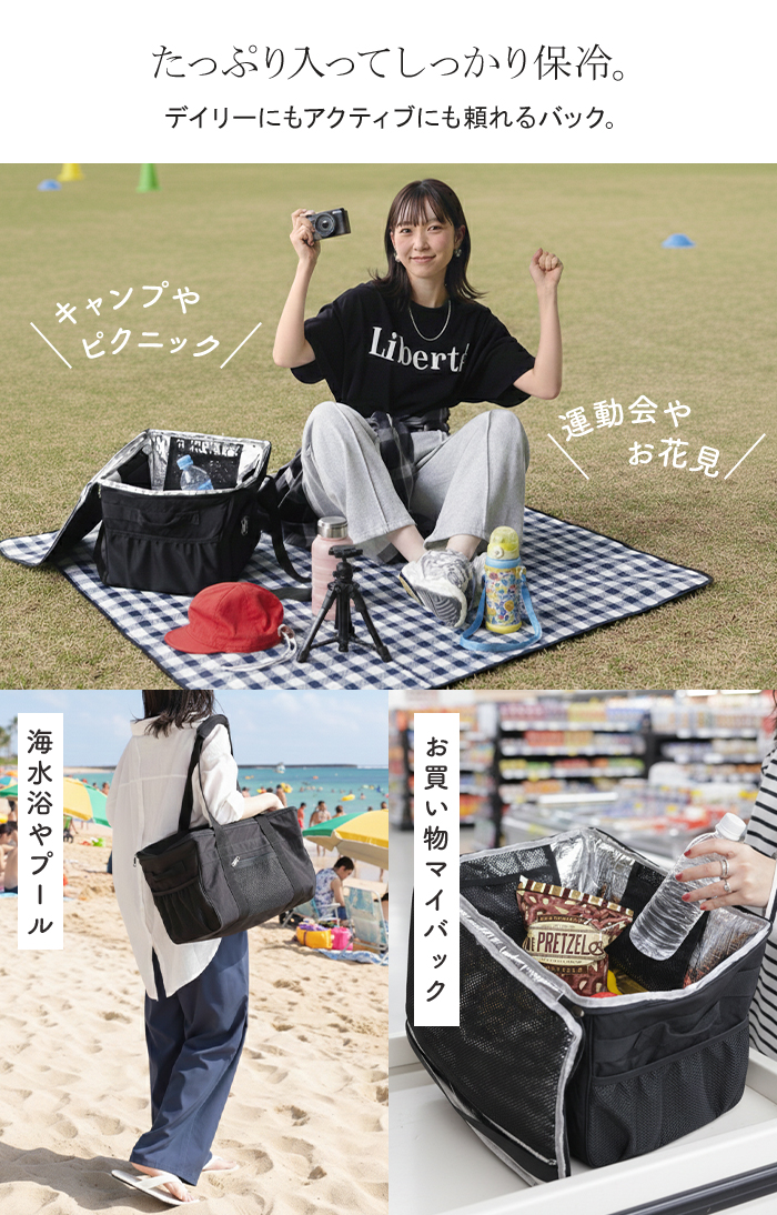 2026SS新作 バッグ 保冷 折り畳み式 大容量 ■3月中旬入荷 レディース 保冷バッグ かばん カバン 21L クーラーバッグ 撥水 コンパクト マチ 広 トートバッグ エコバッグ 買い物かご ポケット 大きめ 収納 丈夫 アルミ 鞄 アウトドア スポーツ メンズ レジャー 黒 ブラック 春 夏 HUG.U